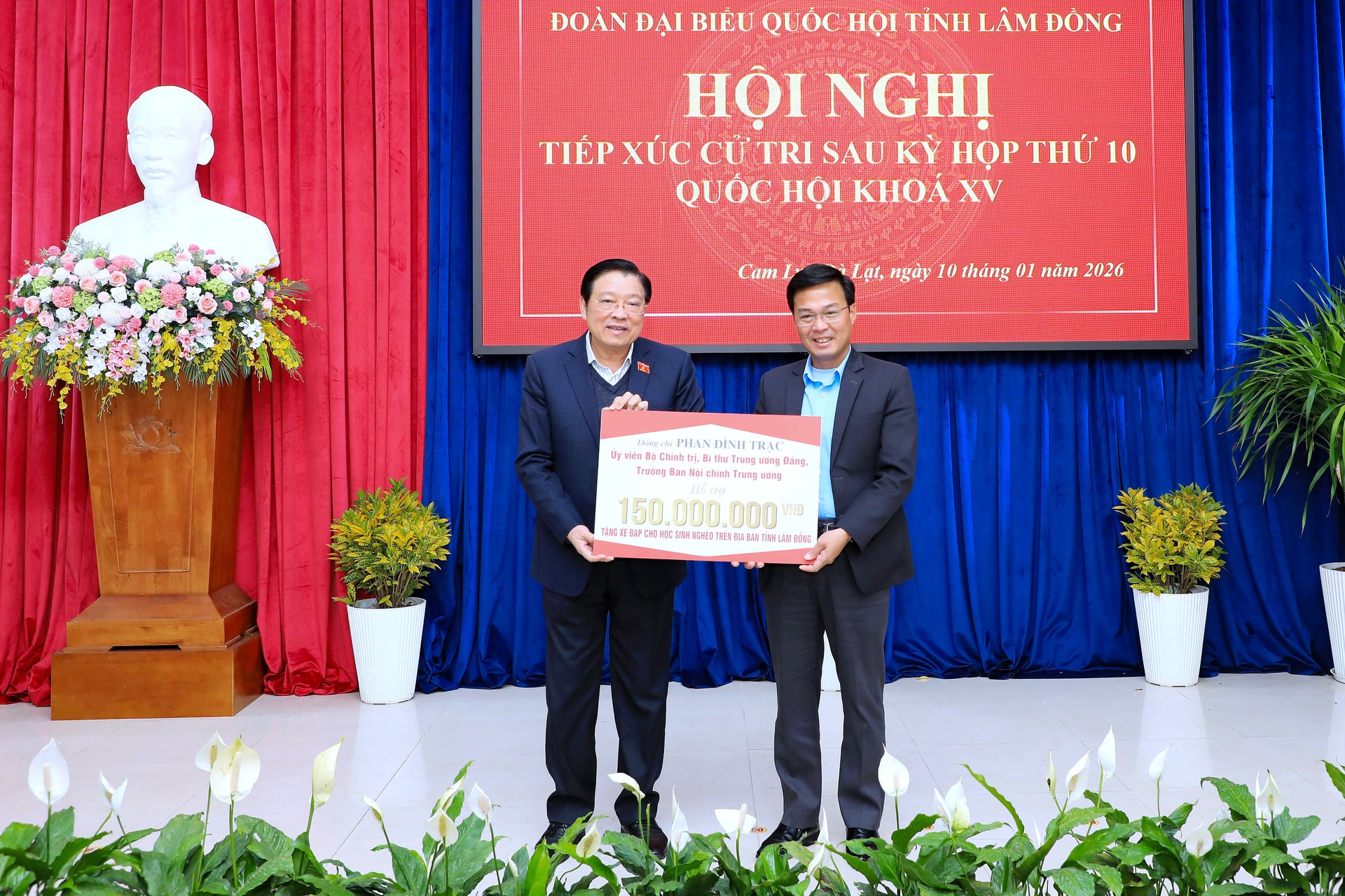 Nhân dịp này, đồng chí Phan Đình Trạc và Đoàn ĐBQH tỉnh Lâm Đồng đã hỗ trợ 150 triệu đồng cho tỉnh Lâm Đồng để mua tặng xe đạp cho học sinh nghèo trên địa bàn.