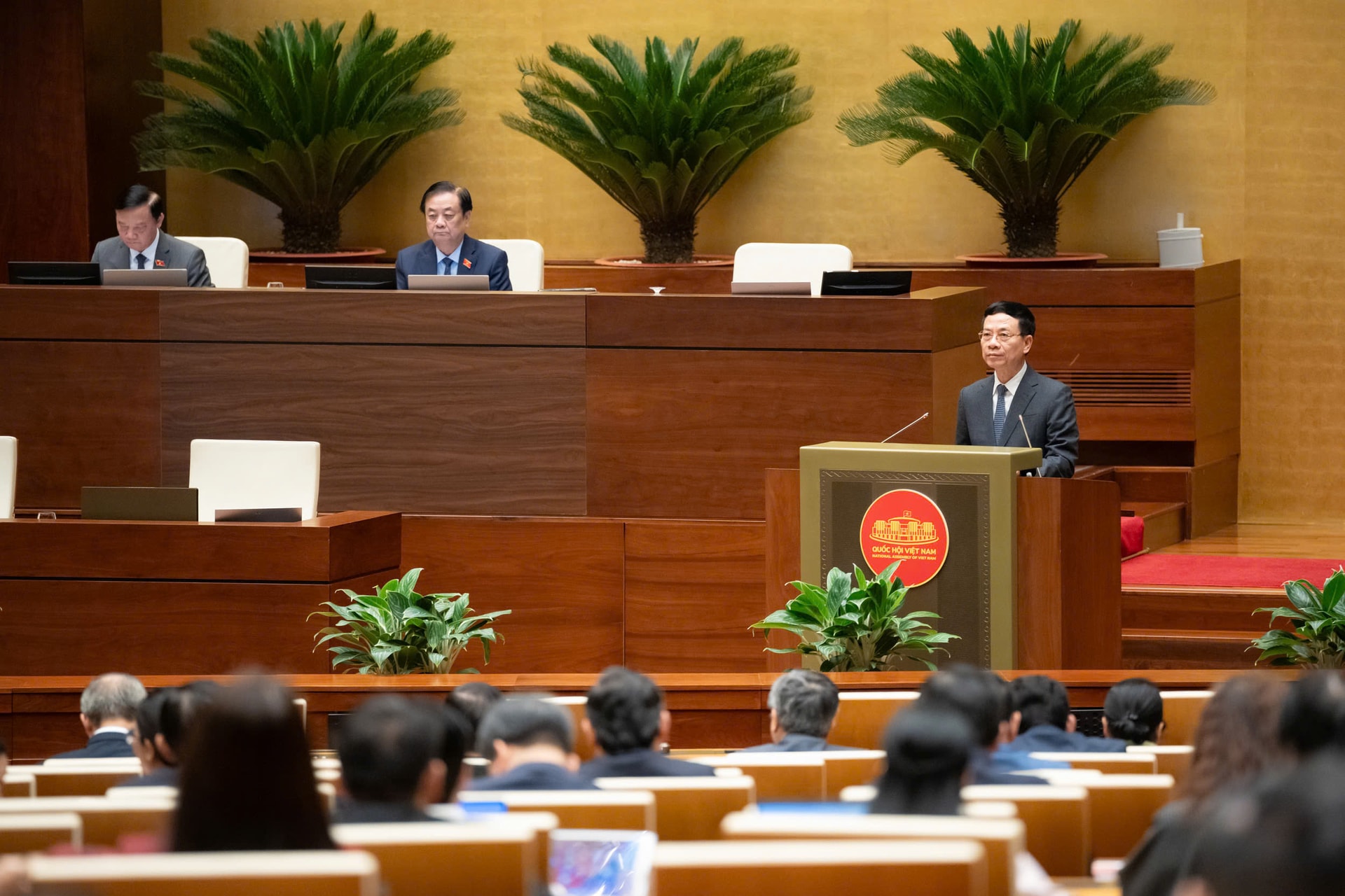 Trình bày Tờ trình, Bộ trưởng Bộ Khoa học và Công nghệ Nguyễn Mạnh Hùng nhấn mạnh chủ trương của Đảng và Nhà nước về ưu tiên, đẩy mạnh phát triển các công nghệ chiến lược, từng bước làm chủ công nghệ, đặc biệt là công nghệ trí tuệ nhân tạo (AI).