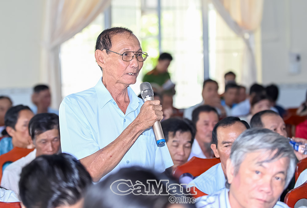 Các thành viên trong Đoàn đại biểu Quốc hội tỉnh Cà Mau lắng nghe kiến nghị của cử tri xã An Trạch.