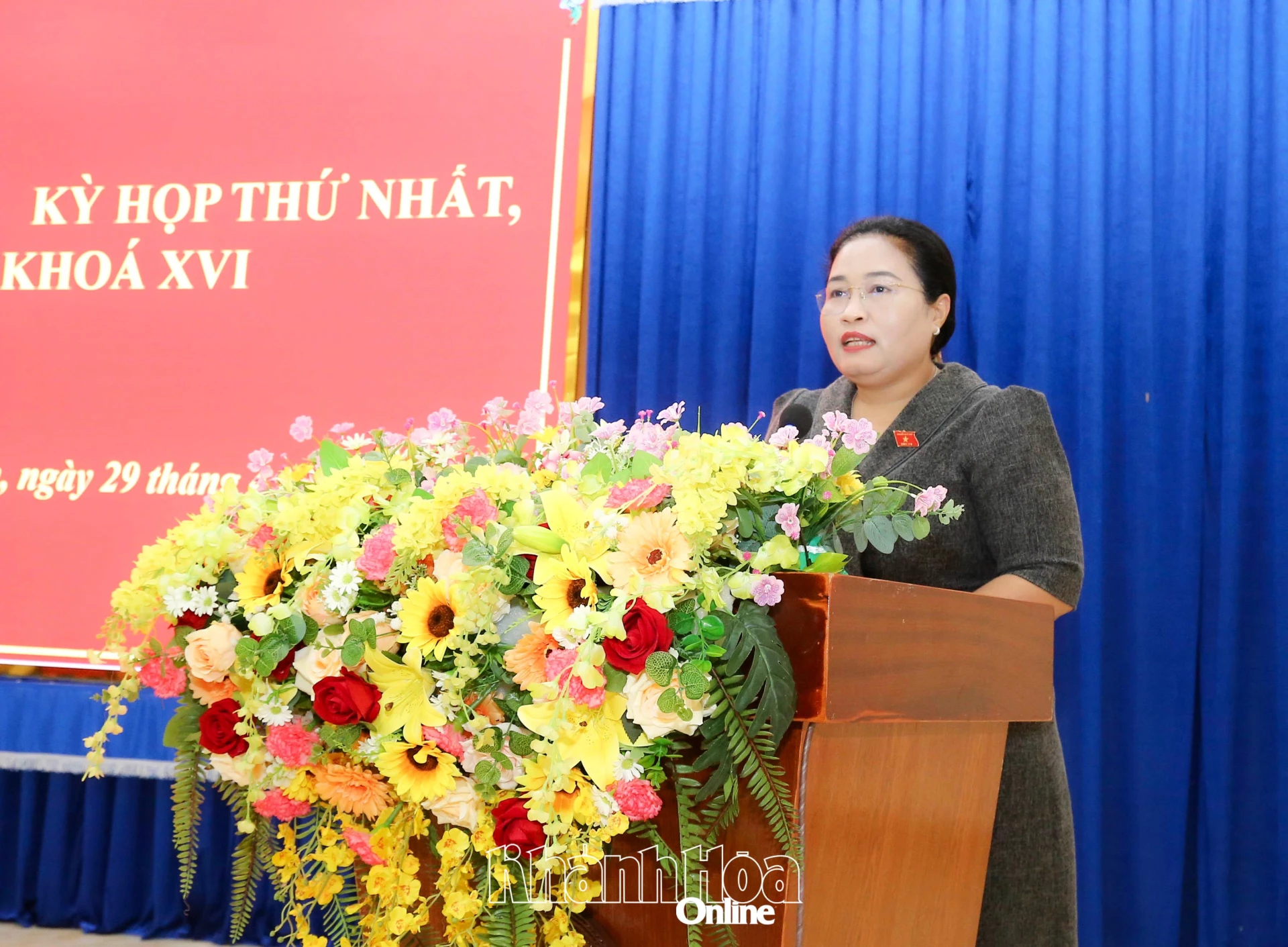 Đồng chí Chamaleá Thị Thủy báo cáo một số kết quả nổi bật của Kỳ họp thứ nhất, Quốc hội khóa XVI.