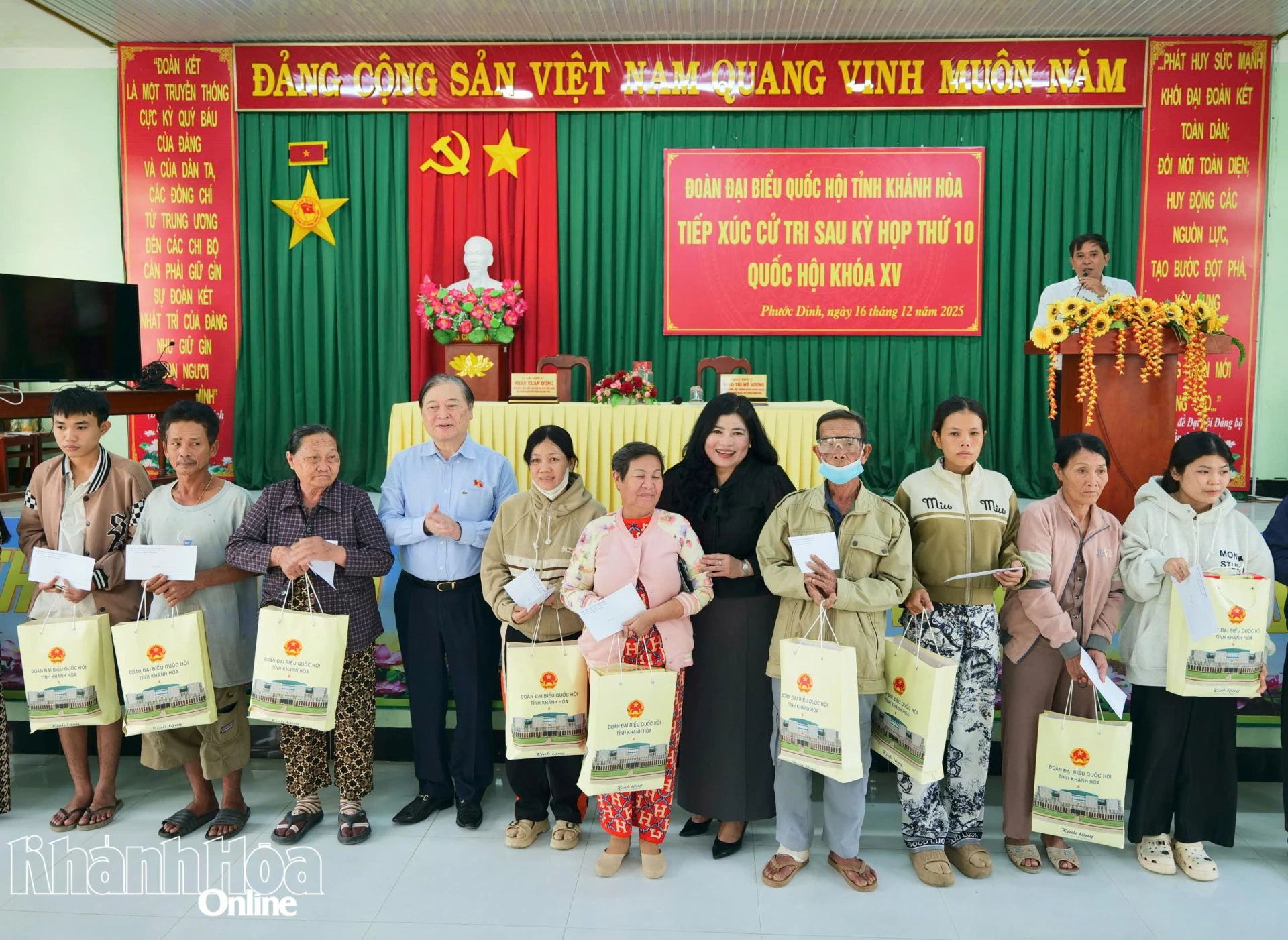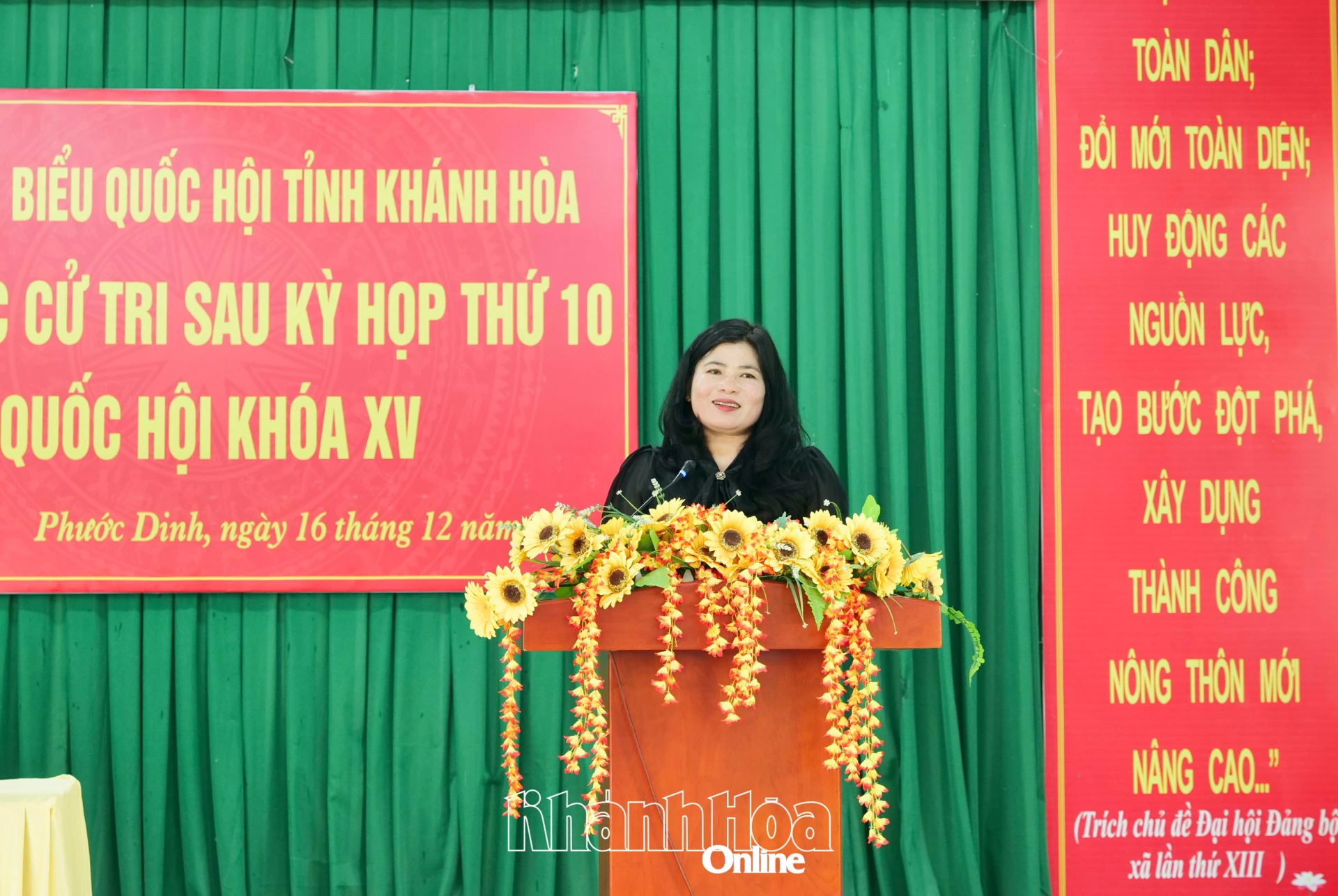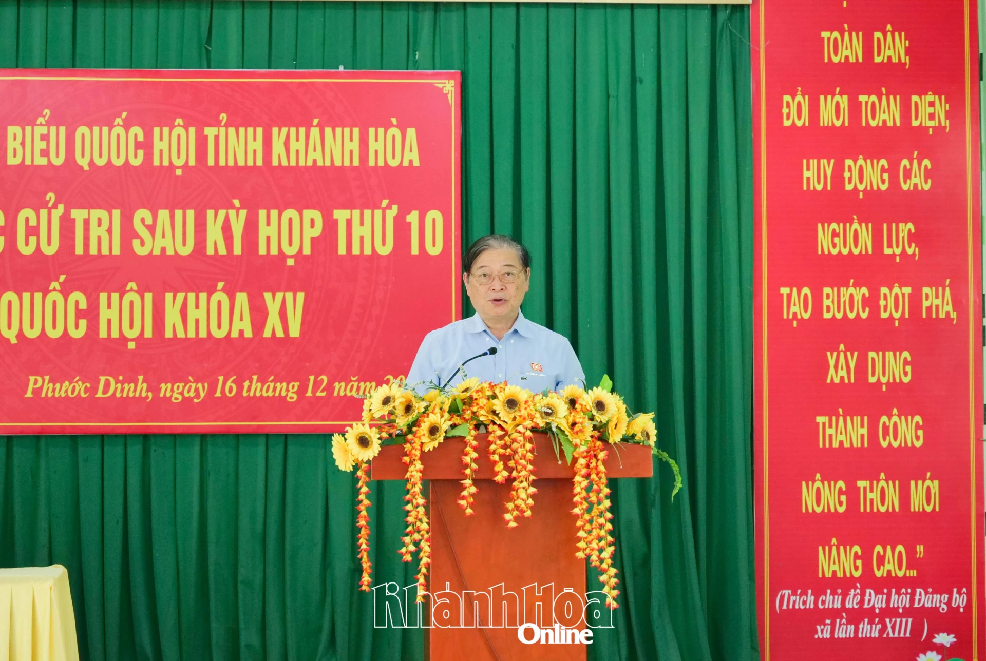 Chiều 16-12, đại biểu Quốc hội tỉnh Khánh Hòa gồm các đồng chí: Phan Xuân Dũng - Chủ tịch Liên hiệp các Hội Khoa học và Kỹ thuật Việt Nam; Đàng Thị Mỹ Hương - Phó Trưởng đoàn chuyên trách Đoàn Đại biểu Quốc hội tỉnh tiếp xúc cử tri xã Phước Dinh.