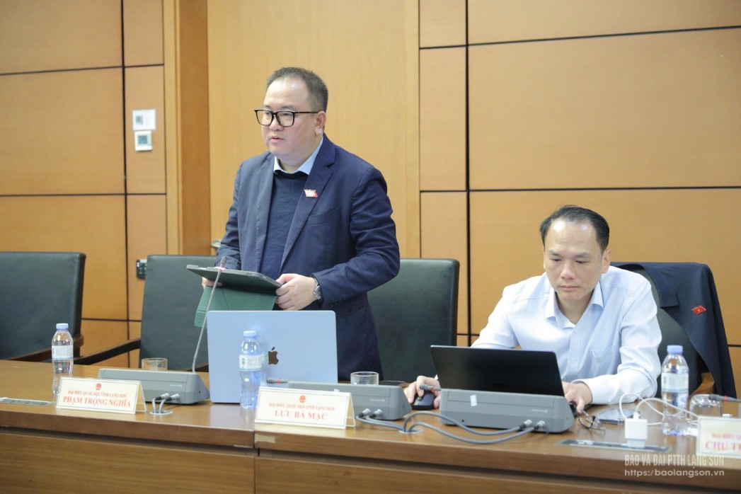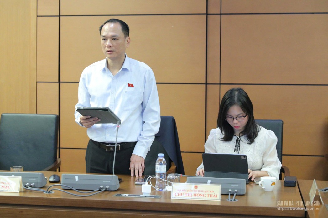 Thảo luận tại tổ 6 gồm Đoàn đại biểu Quốc hội (ĐBQH) tỉnh Lạng Sơn, thành phố Huế và tỉnh Đồng Nai. Đồng chí Triệu Quang Huy, Tỉnh ủy viên, Ủy viên Ủy ban Kinh tế và Tài chính của Quốc hội, Phó Trưởng đoàn chuyên trách Đoàn ĐBQH tỉnh Lạng Sơn chủ trì thảo luận tại tổ 6.
