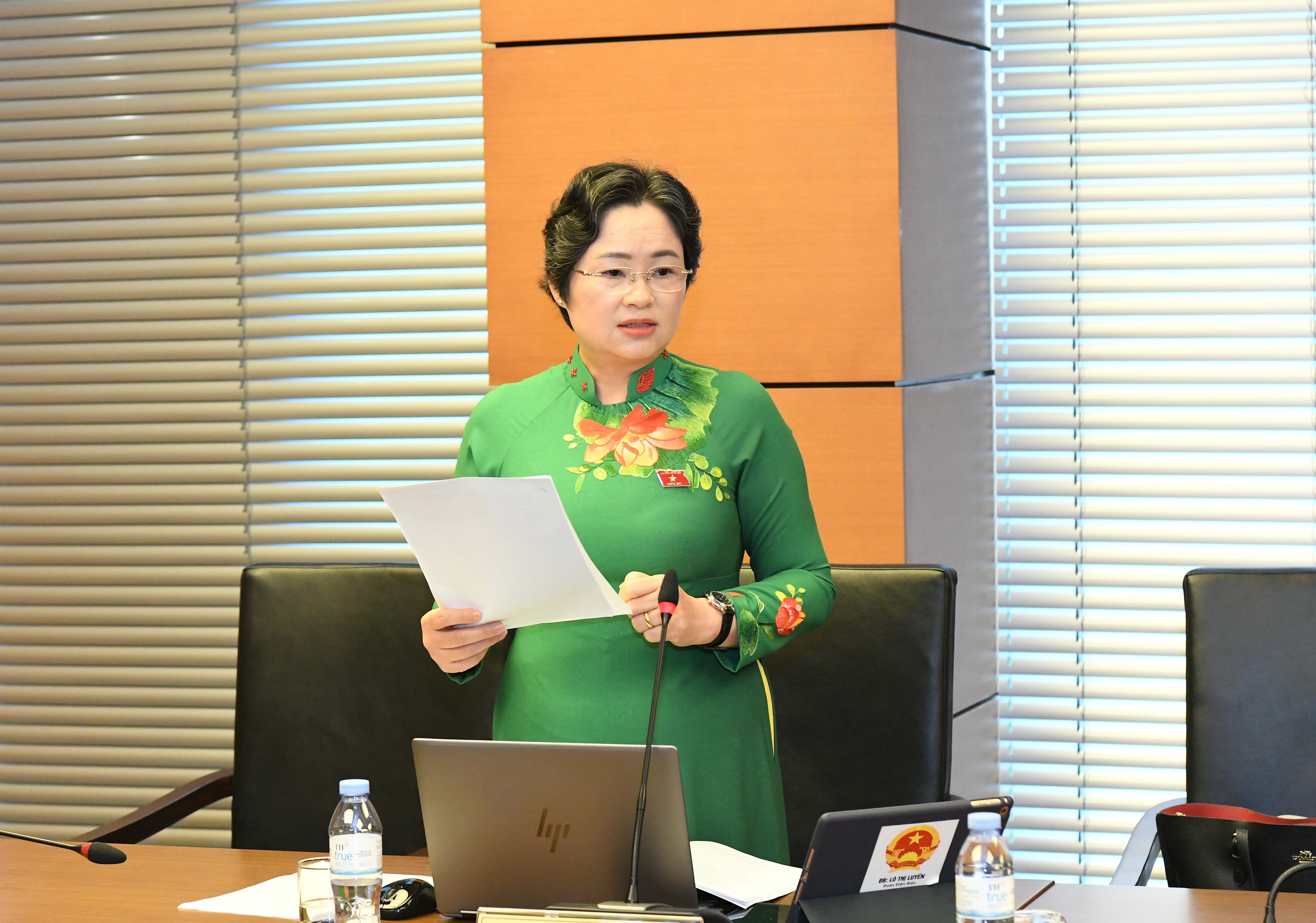 Đại biểu Lò Thị Luyến, Phó Trưởng đoàn chuyên trách Đoàn ĐBQH tỉnh tham gia thảo luận về các dự thảo luật.