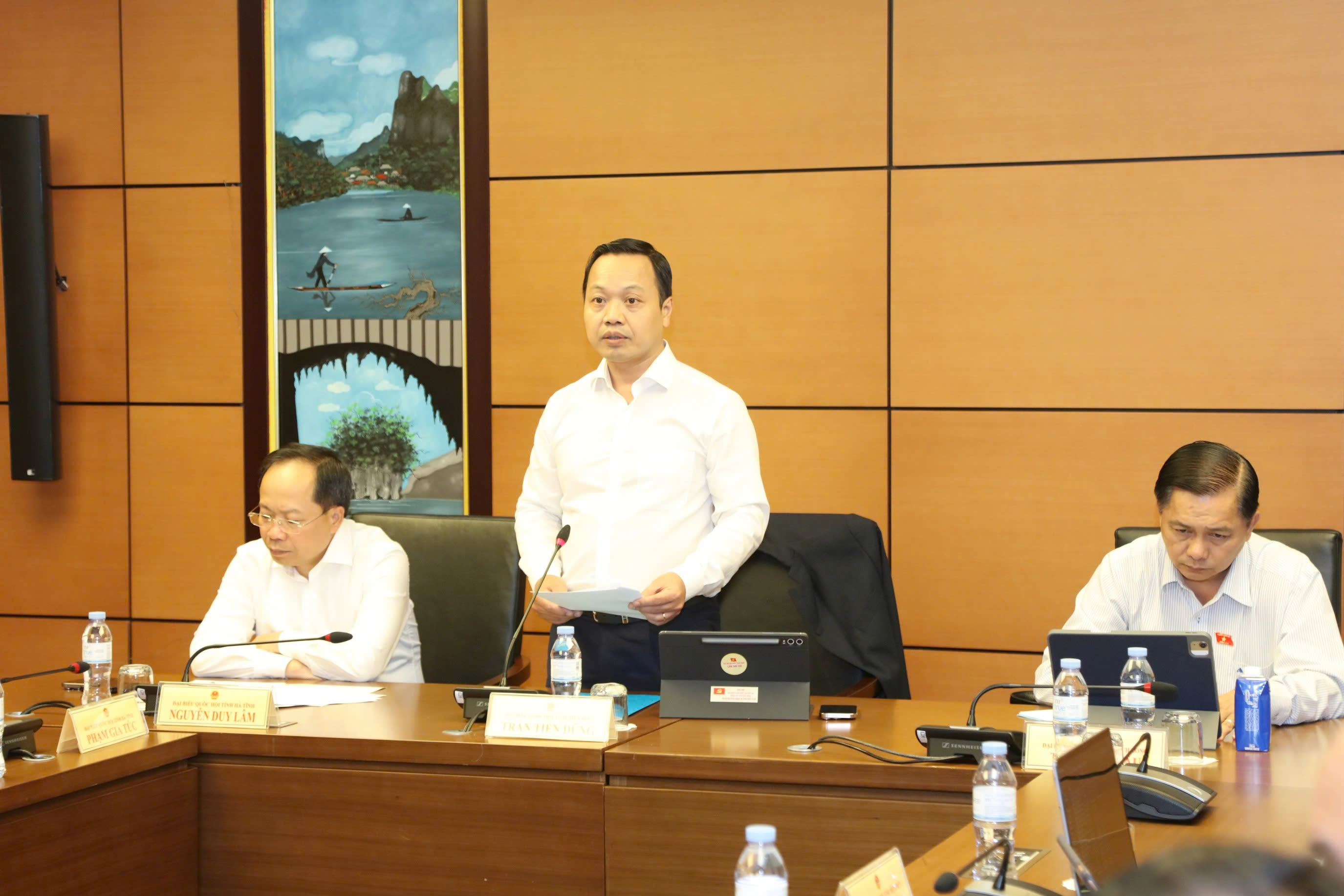 Đồng chí Trần Tiến Dũng, Ủy viên BCH Trung ương Đảng, Bí thư Tỉnh ủy, Trưởng đoàn ĐBQH tỉnh phát biểu chủ trì phiên thảo luận.
