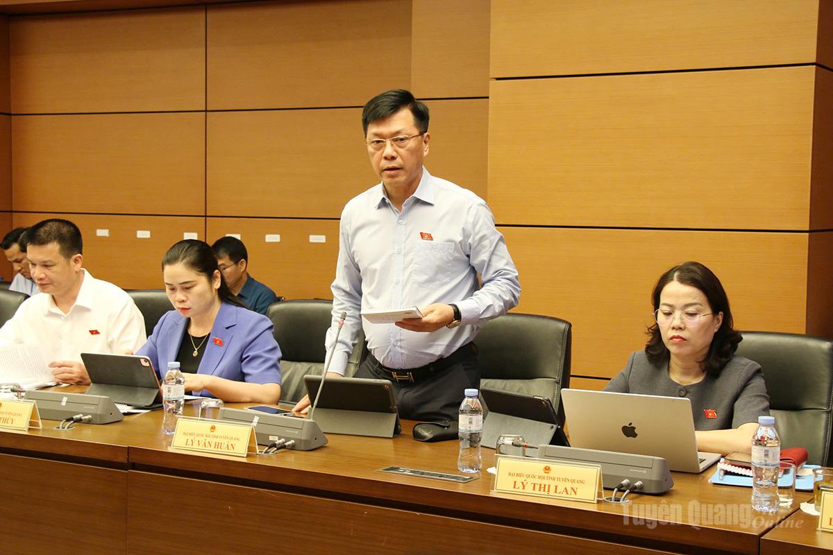 Đại biểu Lý Văn Huấn, Ủy viên BCH Đảng bộ tỉnh, Viện trưởng Viện kiểm sát nhân dân tỉnh, ĐBQH tỉnh Tuyên Quang khóa XVI tham gia thảo luận.