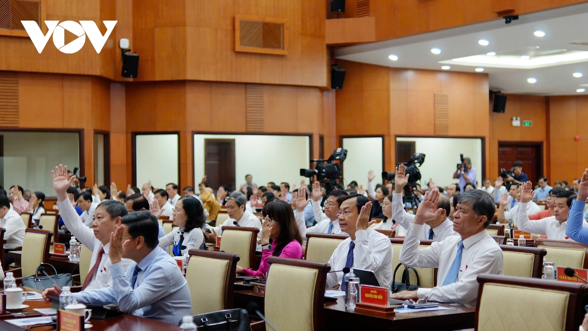 Đại biểu HĐND TP.HCM biểu quyết thông qua nghị quyết (Ảnh: H.K)