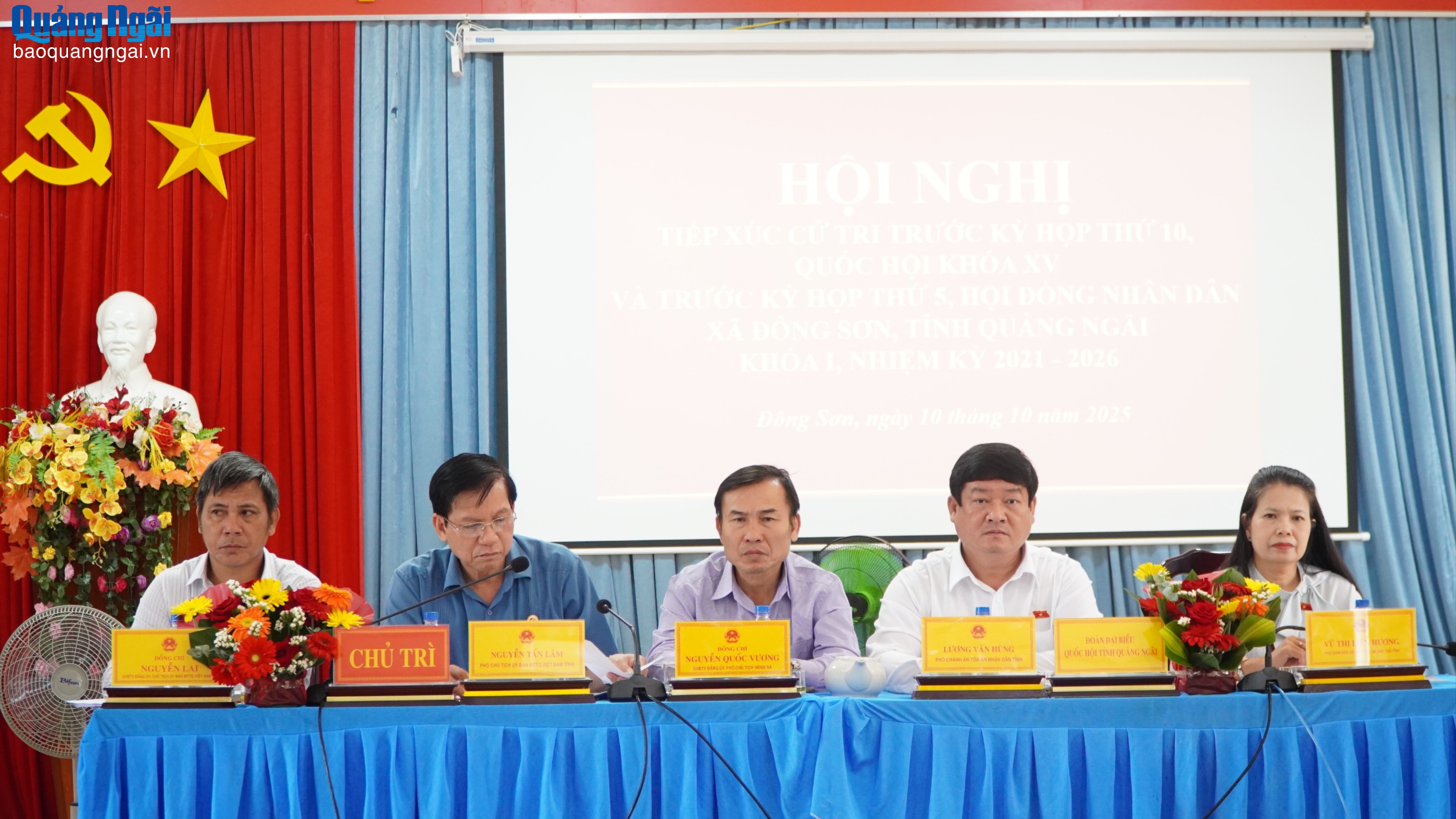 Tại buổi tiếp xúc, cử tri xã Đông Sơn bày tỏ sự phấn khởi, tin tưởng vào sự lãnh đạo của Đảng, sự điều hành linh hoạt của Nhà nước trong thời gian qua. Kinh tế, xã hội tiếp tục phục hồi, an sinh xã hội được đảm bảo, đời sống nhân dân ổn định và từng bước được cải thiện.
