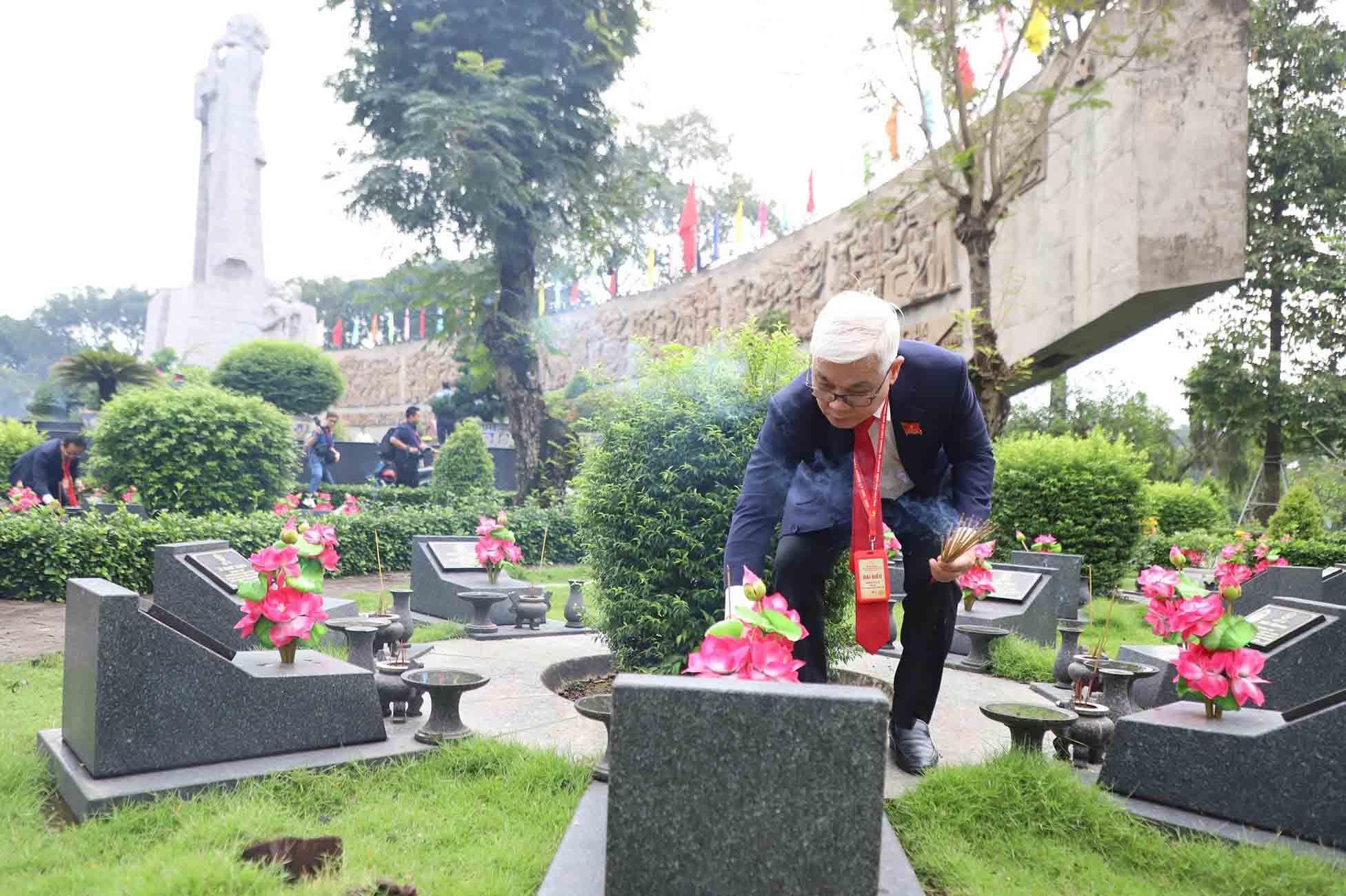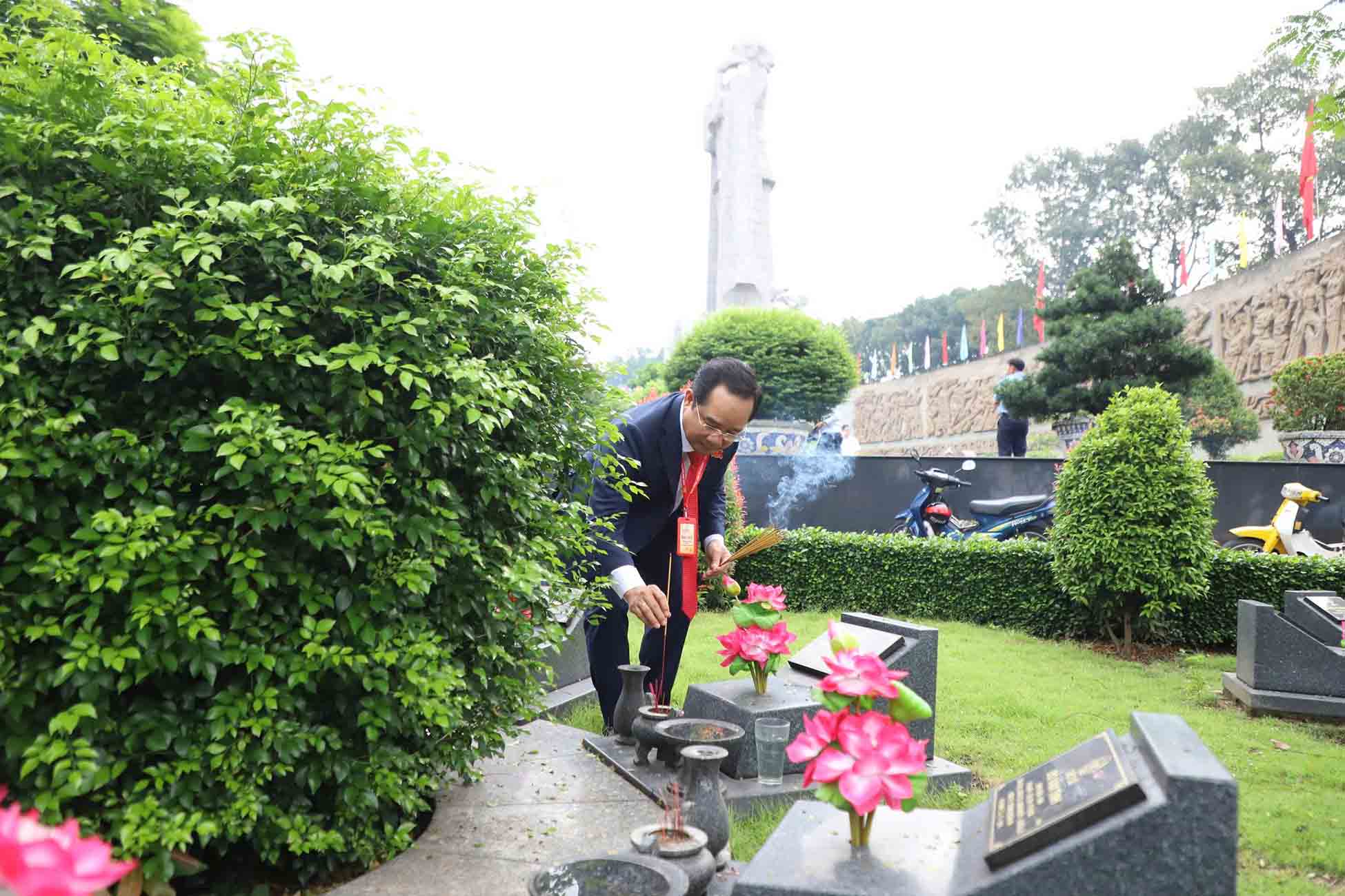 Các đại biểu đã đến phần mộ của các Anh hùng liệt sĩ, thắp những nén hương thơm để tưởng nhớ và tri ân.