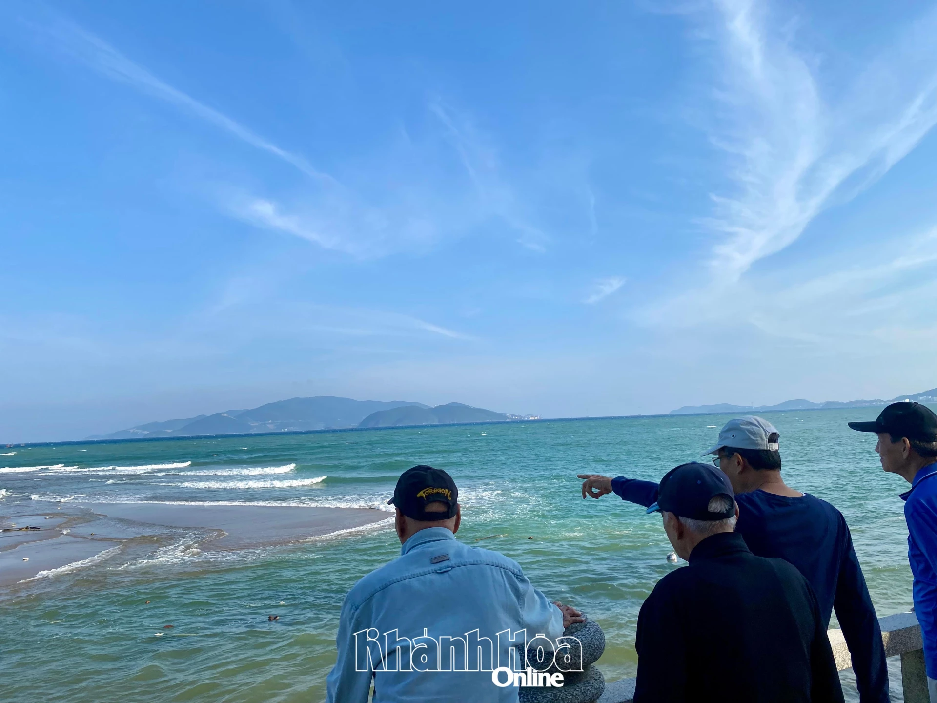 Ngày 18-1, nhiều người dân và du khách tò mò đến xem dải cát nổi lên với diện tích khoảng hơn 1ha ở khu vực biển Nha Trang (đối diện Công viên Yersin, đường Trần Phú).
