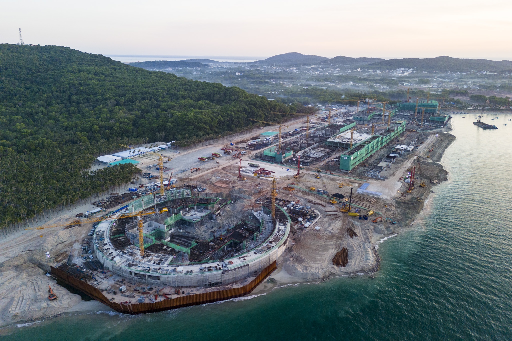 Đến giữa tháng 12, dự án hoàn thành 80% san lấp, xây kè, đóng hơn 3.600 cọc. Riêng trung tâm hội nghị và nhà hát đạt 33% tiến độ.