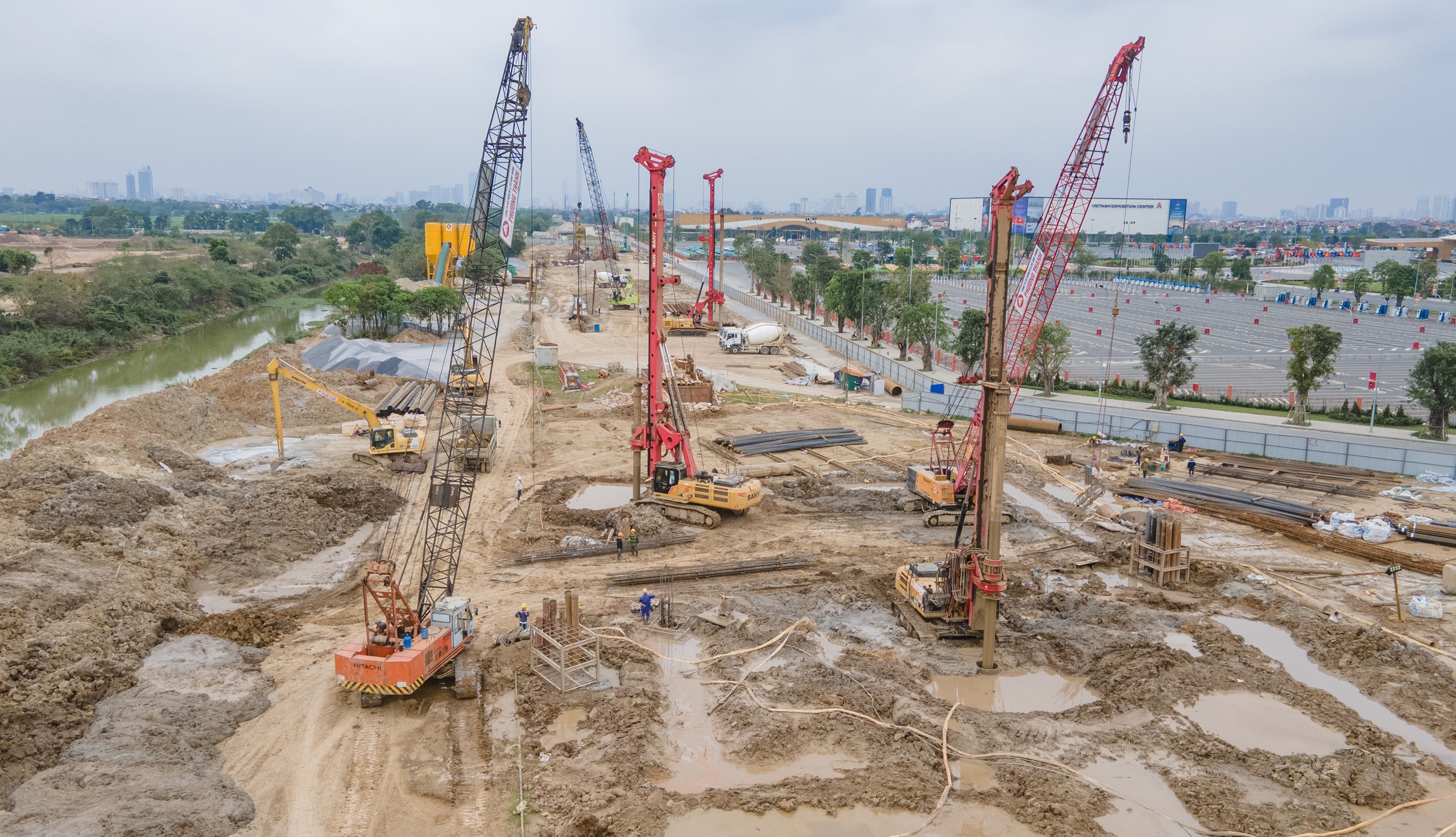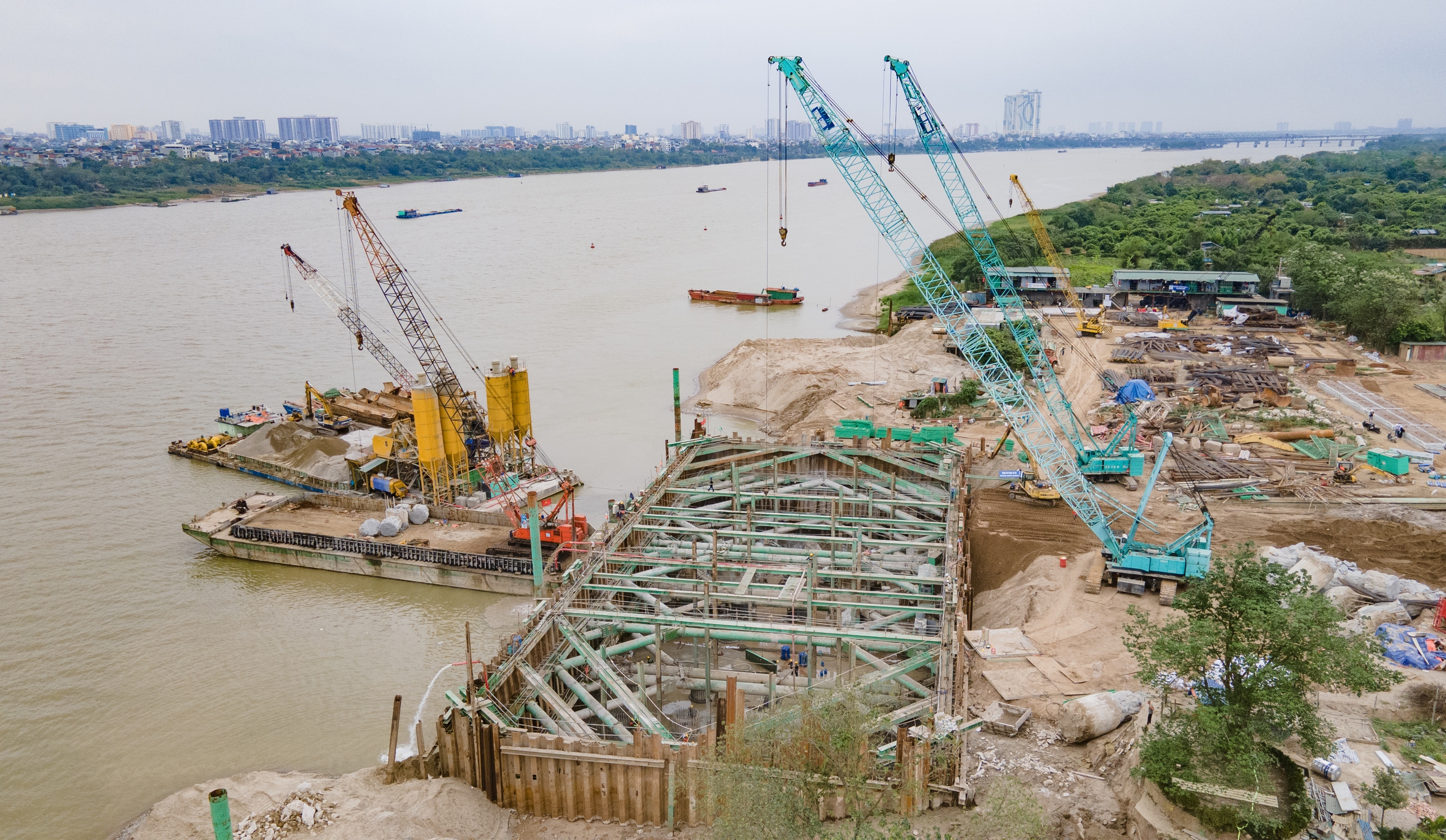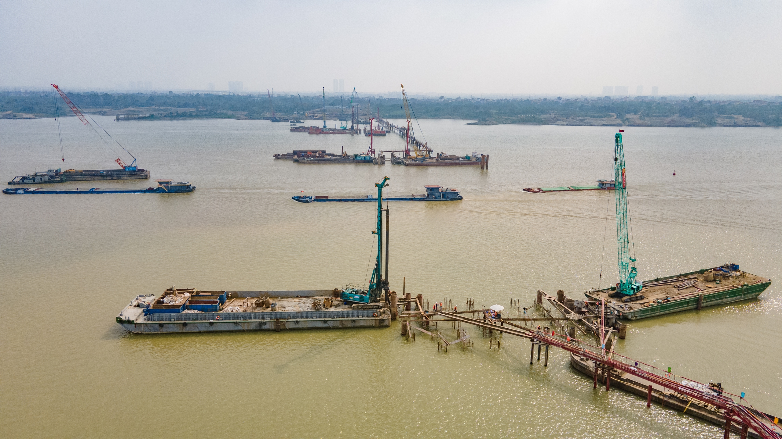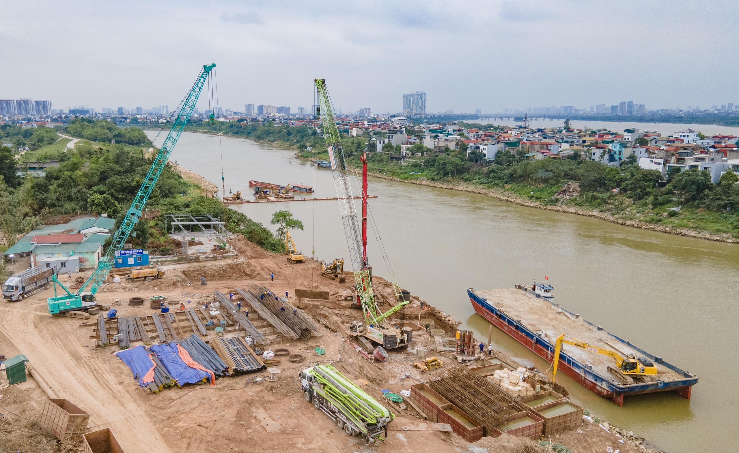 Trước mắt, các mũi thi công dưới lòng sông đang tập trung hoàn thành hạng mục cọc khoan nhồi, tạo nền móng vững chắc cho các trụ cầu trong giai đoạn tiếp theo.