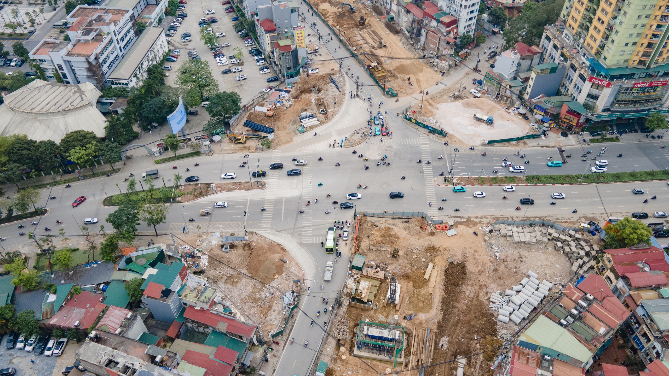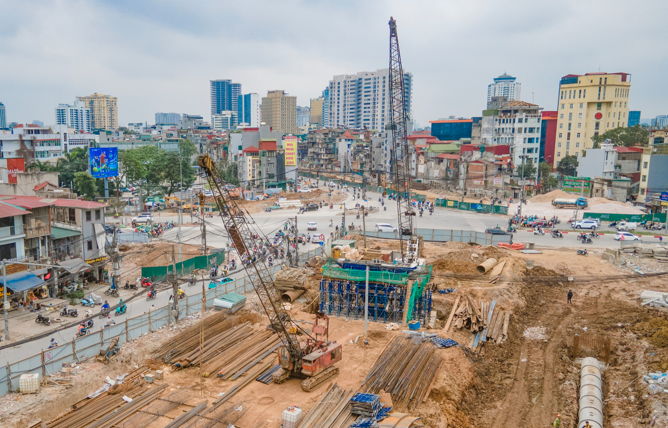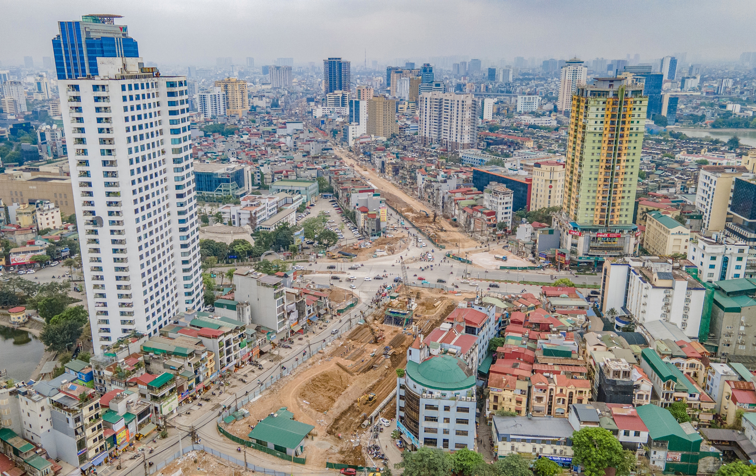 Từ một công trình từng “đứng hình” suốt thời gian dài, tuyến Vành đai 1 đoạn Hoàng Cầu - Voi Phục nay đã trở thành đại công trường sôi động, với máy móc và con người làm việc không ngừng nghỉ.