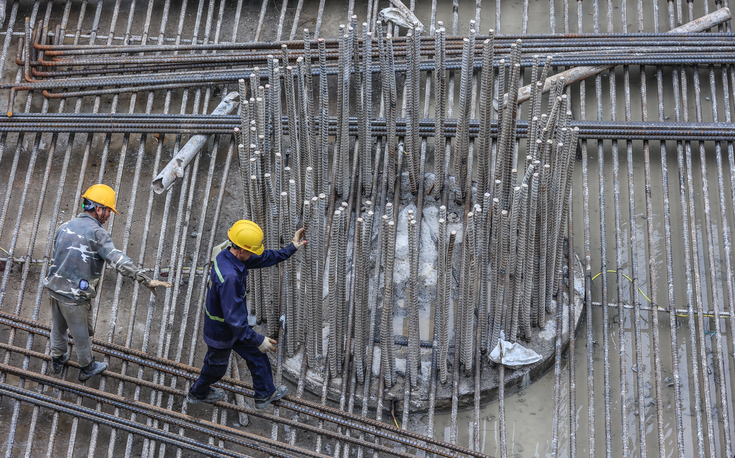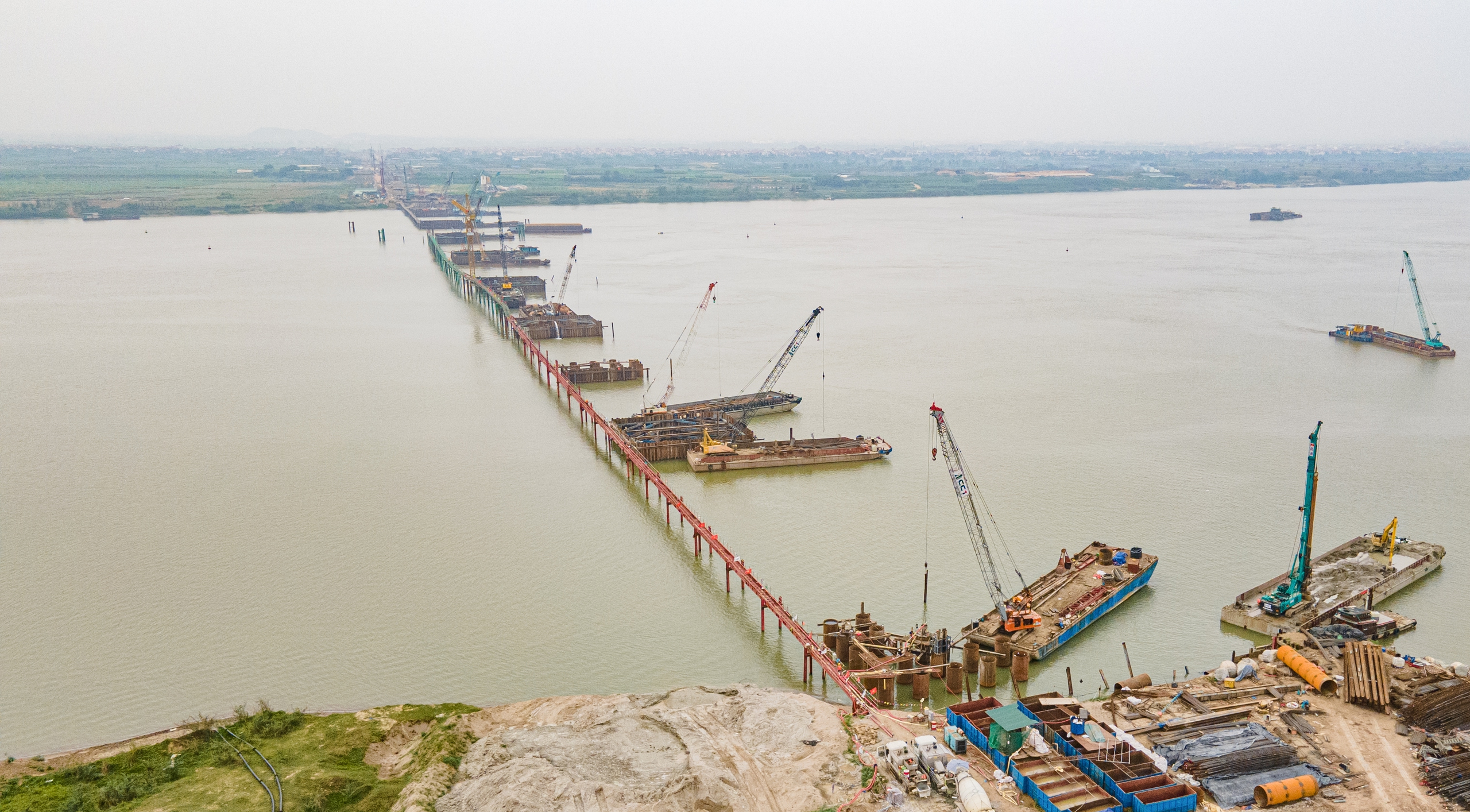 Tranh thủ thời tiết thuận lợi, các nhà thầu đang tăng tốc thi công các trụ cầu dưới lòng sông Hồng, nhằm kịp vượt qua mùa lũ tiểu mãn sắp tới. Xa hơn, mục tiêu được đặt ra là hợp long cầu chính vào khoảng ngày 30/9/2027.