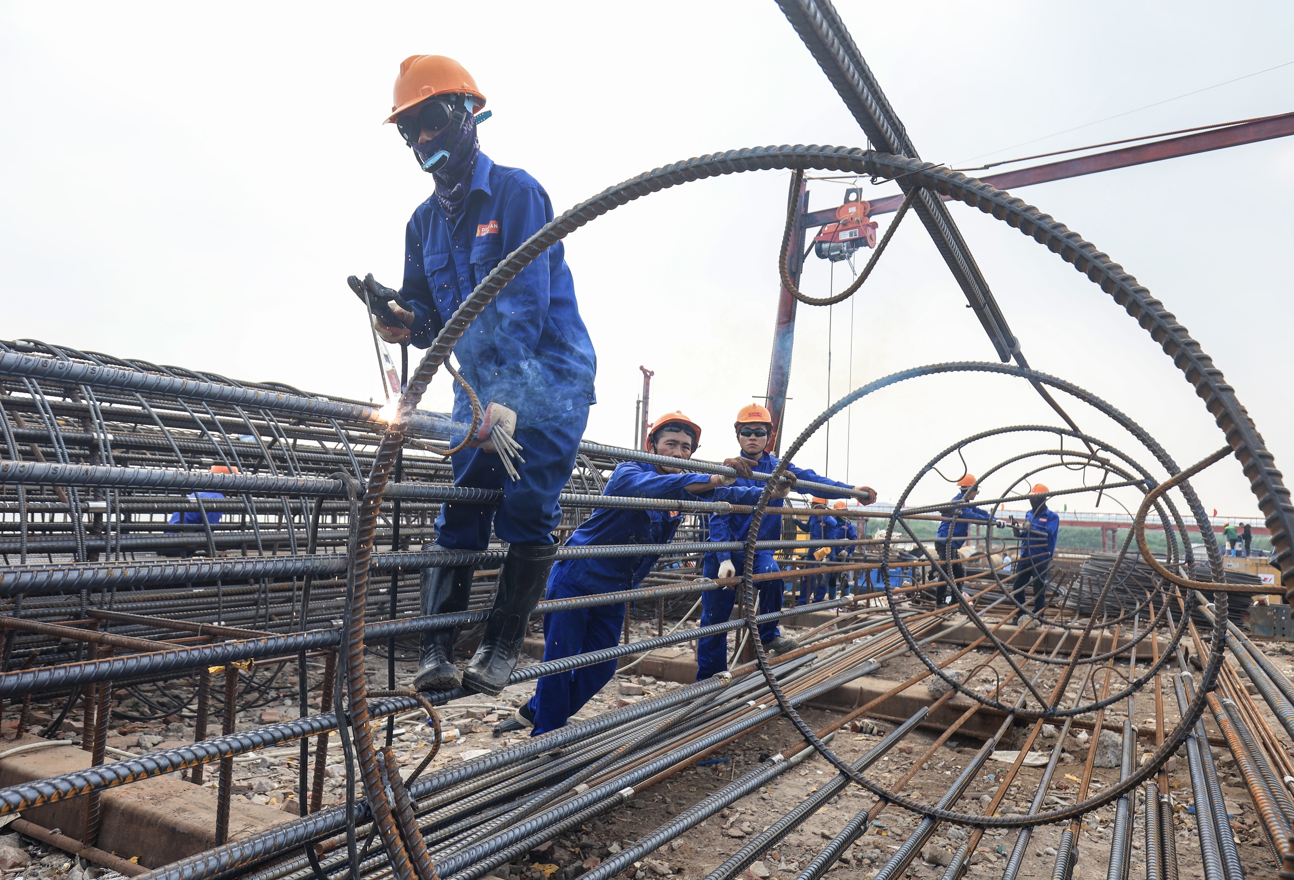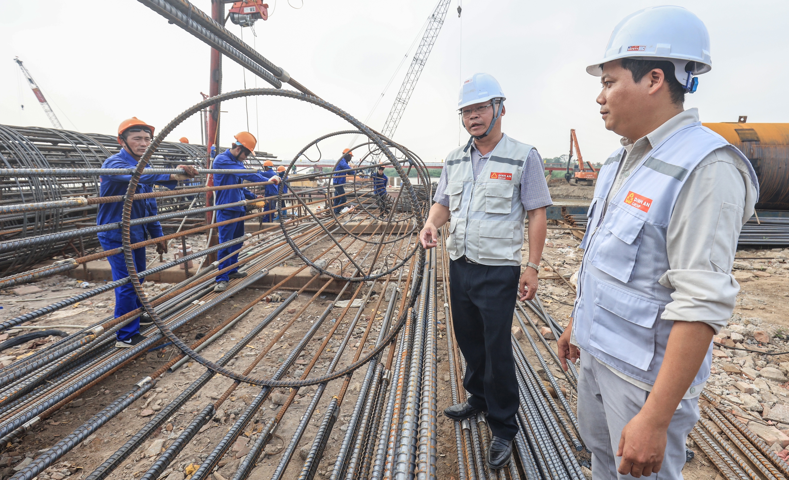 Đến công trường cầu Thượng Cát vào một ngày đầu tháng 4, bất kỳ ai cũng không khỏi choáng ngợp trước khung cảnh như một “rừng” máy móc, thiết bị phủ kín mặt sông Hồng. Âm thanh máy khoan rền rã hòa cùng nhịp làm việc hối hả, khẩn trương của hàng trăm kỹ sư, công nhân, tạo nên bức tranh lao động sôi động và đầy quyết tâm.