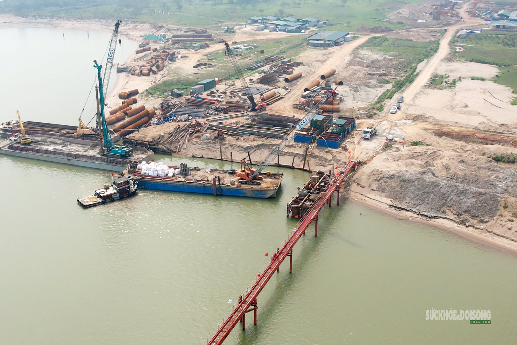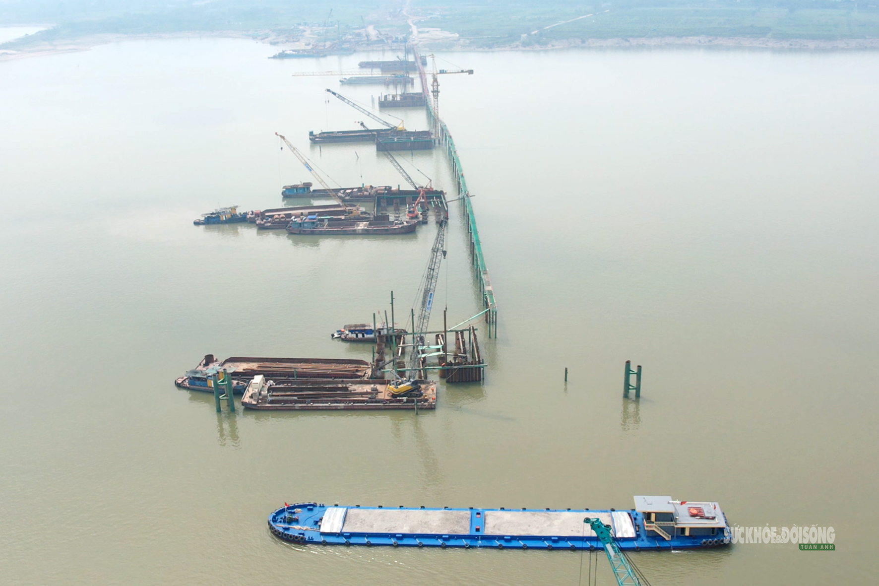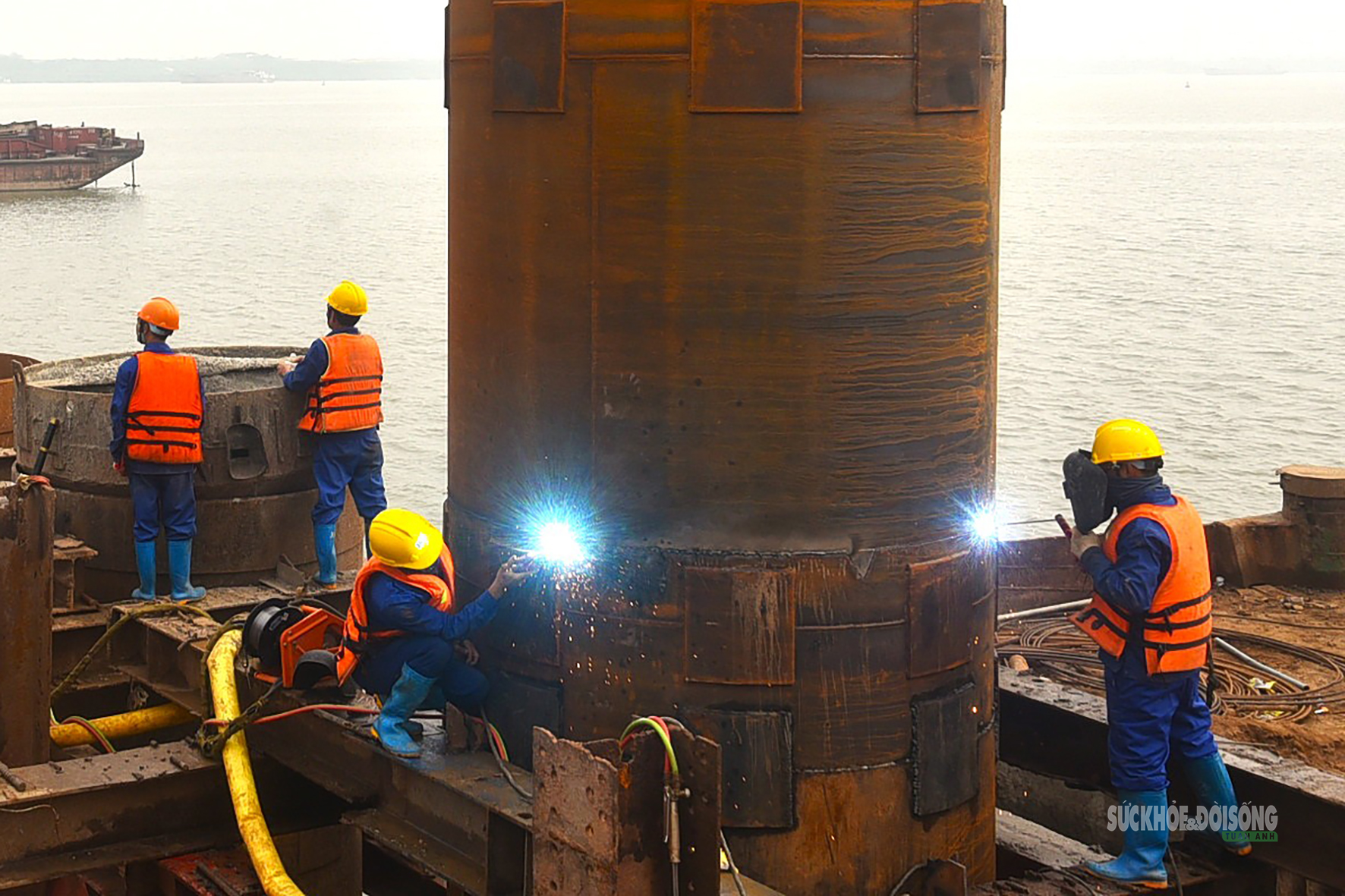 Ghi nhận của phóng viên, trên công trường, hàng chục mũi thi công đang hoạt động liên tục cả trên bờ lẫn dưới sông, tập trung vào cọc khoan nhồi, mố trụ, thân trụ và gia công kết cấu thép. Việc nhiều hạng mục vượt kế hoạch không chỉ tạo đà cho dự án về đích đúng hẹn mà còn mở ra kỳ vọng về một trục giao thông liên vùng mới, giảm tải cho các cầu hiện hữu qua sông Hồng.