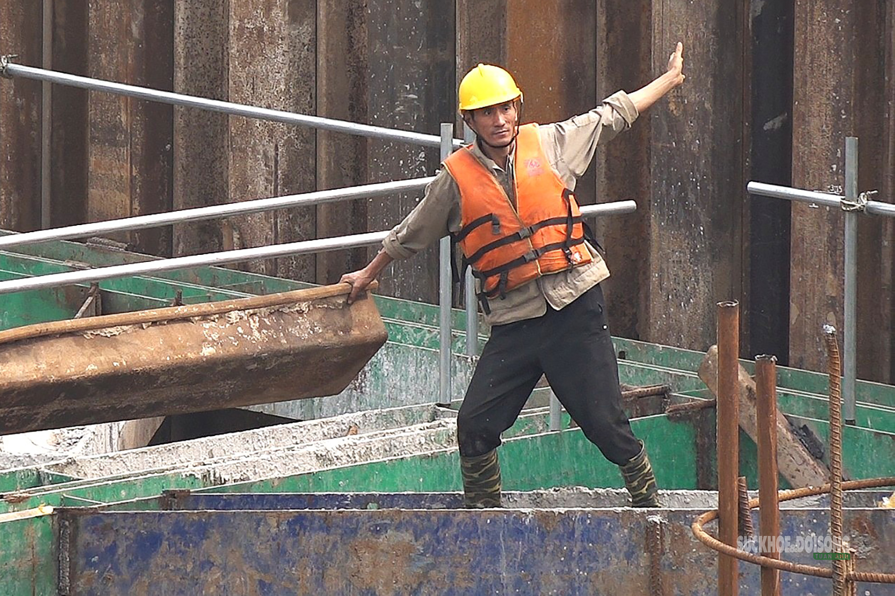 Đại công trường cầu Hồng Hà bứt tốc giữa sông Hồng