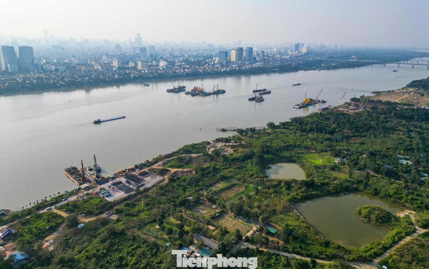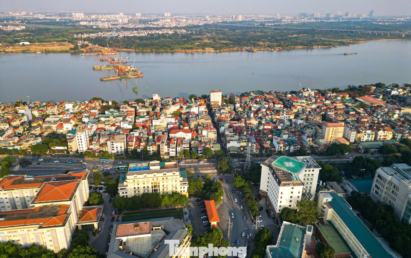 Bay trên đại công trường thi công cầu Trần Hưng Đạo 16.000 tỷ đồng bắc qua sông Hồng.
