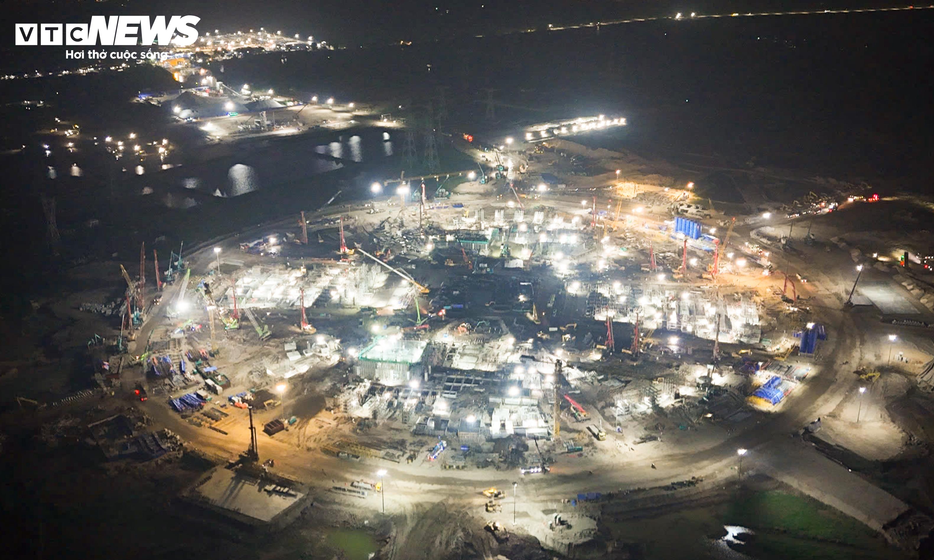 Suốt 4 tháng qua, công trường duy trì nhịp thi công khẩn trương xuyên ngày đêm. Khu vực xây dựng tại xã Thượng Phúc luôn sáng đèn, hàng nghìn công nhân, kỹ sư thay ca làm việc liên tục.