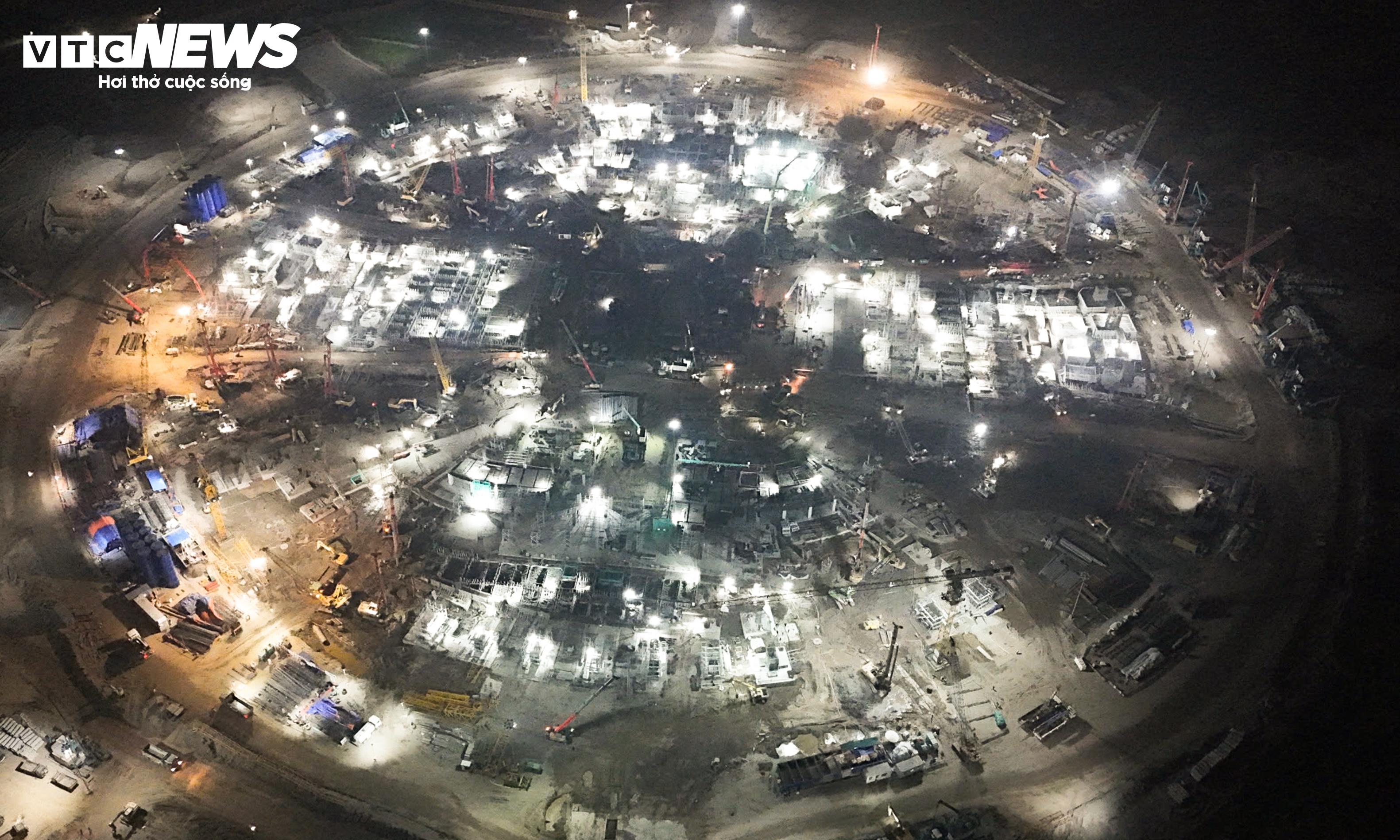 Đại công trường rực sáng xuyên đêm, tăng tốc xây sân vận động lớn nhất thế giới