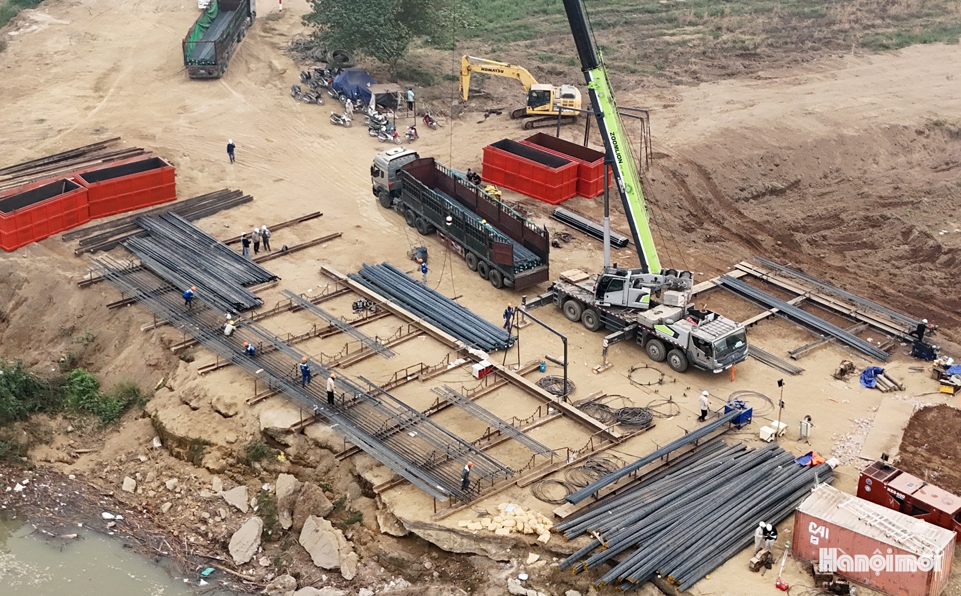 Phía bờ Nam, đơn vị đang chuẩn bị dây chuyền để khoan cọc D1200 thuộc các trụ P19 đến trụ P21. Dự kiến, đơn vị thi công sẽ hoàn thành kết cấu phần dưới trong tháng 12-2026; hoàn thành kết cấu phần trên trong quý II-2027.