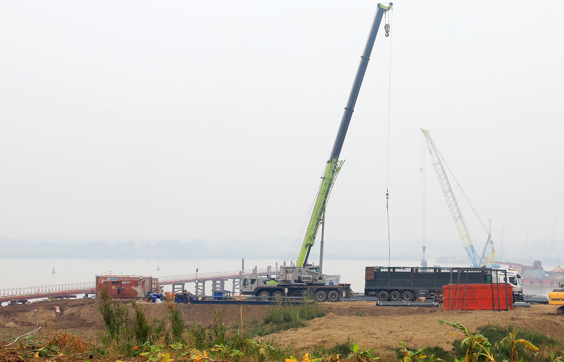 Trong đó, cầu chính đã hoàn thành 3/118 cọc và đang hoàn thiện công tác hạ ống vách để thi công cọc khoan nhồi (Trụ P29, P31). Cầu dẫn đã khoan được 59/964 cọc (phía bờ Bắc tại các trụ P38, P39, P40, P41).