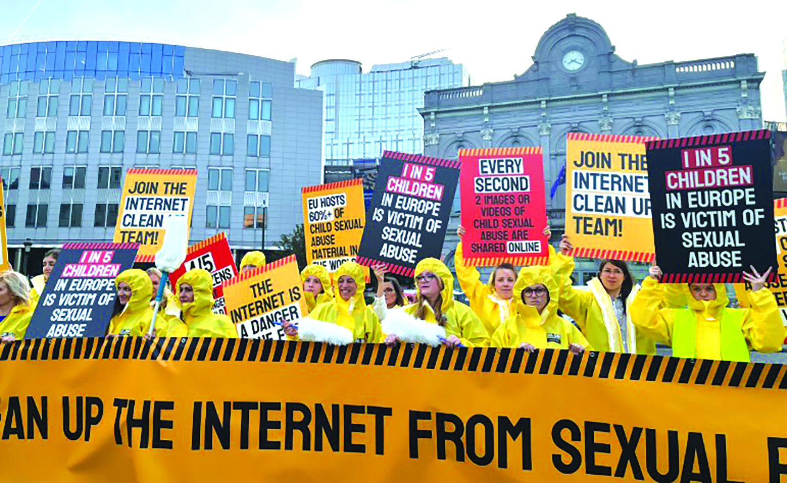 Một cuộc biểu tình tại Brussels (Bỉ) yêu cầu nhà chức trách có biện pháp ngăn chặn tình trạng lạm dụng tình dục trẻ em trên mạng. Ảnh: EUROCHILD