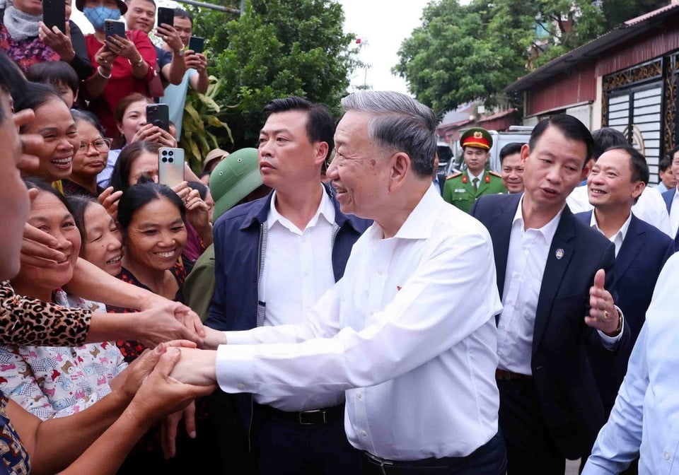 Tổng Bí thư Tô Lâm với nhân dân tỉnh Hưng Yên. Ảnh TTXVN