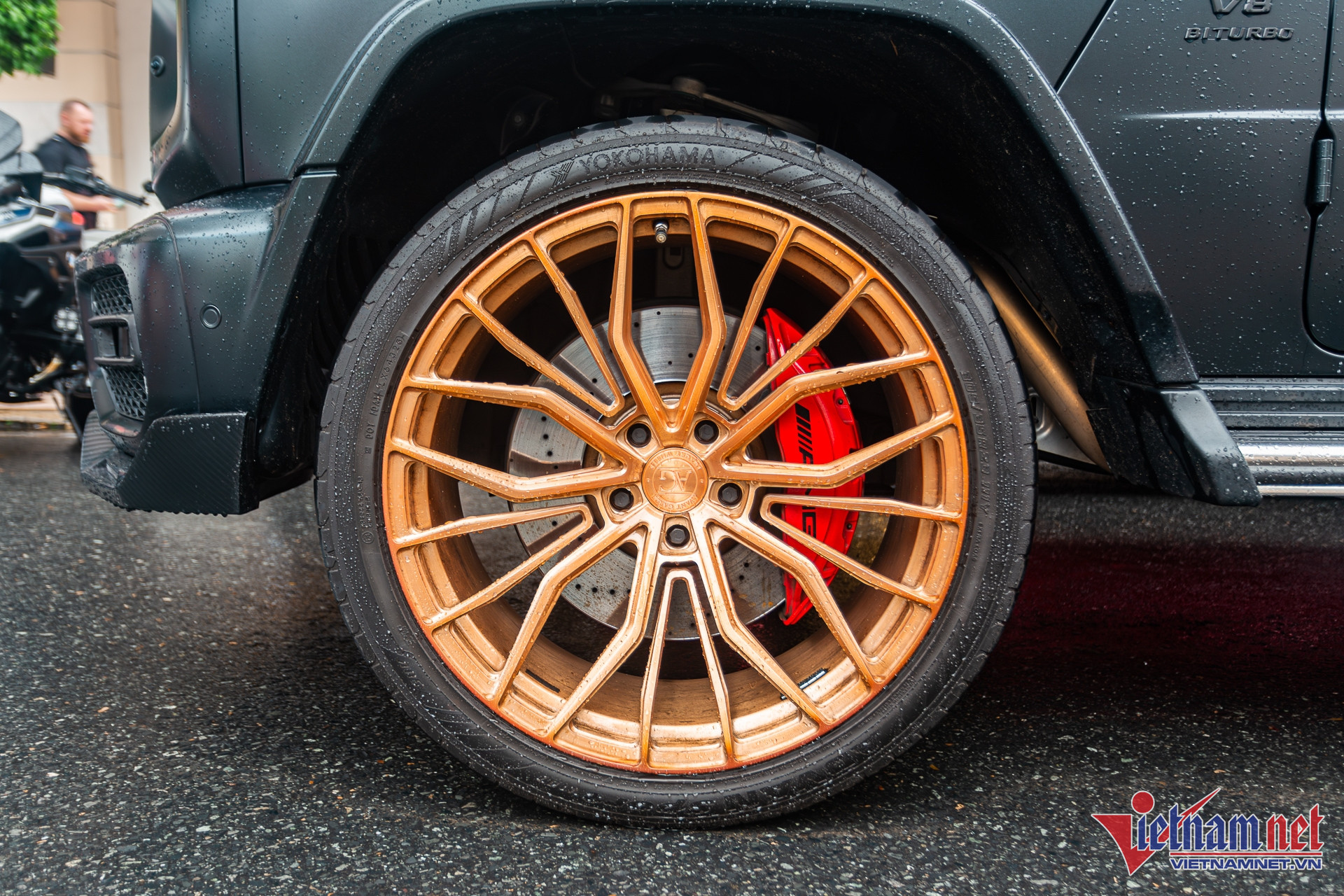 Chiếc G 63 này đặc biệt hơn khi được chủ xe chọn nâng cấp bộ bodykit đến từ thương hiệu của Nga - TopCar Design. Theo tìm hiểu của phóng viên báo VietNamNet, chiếc xe thuộc đời 2021, nhập khẩu tư nhân và có giá lăn bánh hơn 13 tỷ đồng khi mua mới. Chủ nhân đầu tiên của xe là một người hoạt động trong lĩnh vực kinh doanh xe motor phân khối lớn, đồng thời là người bỏ tiền độ lại xe.