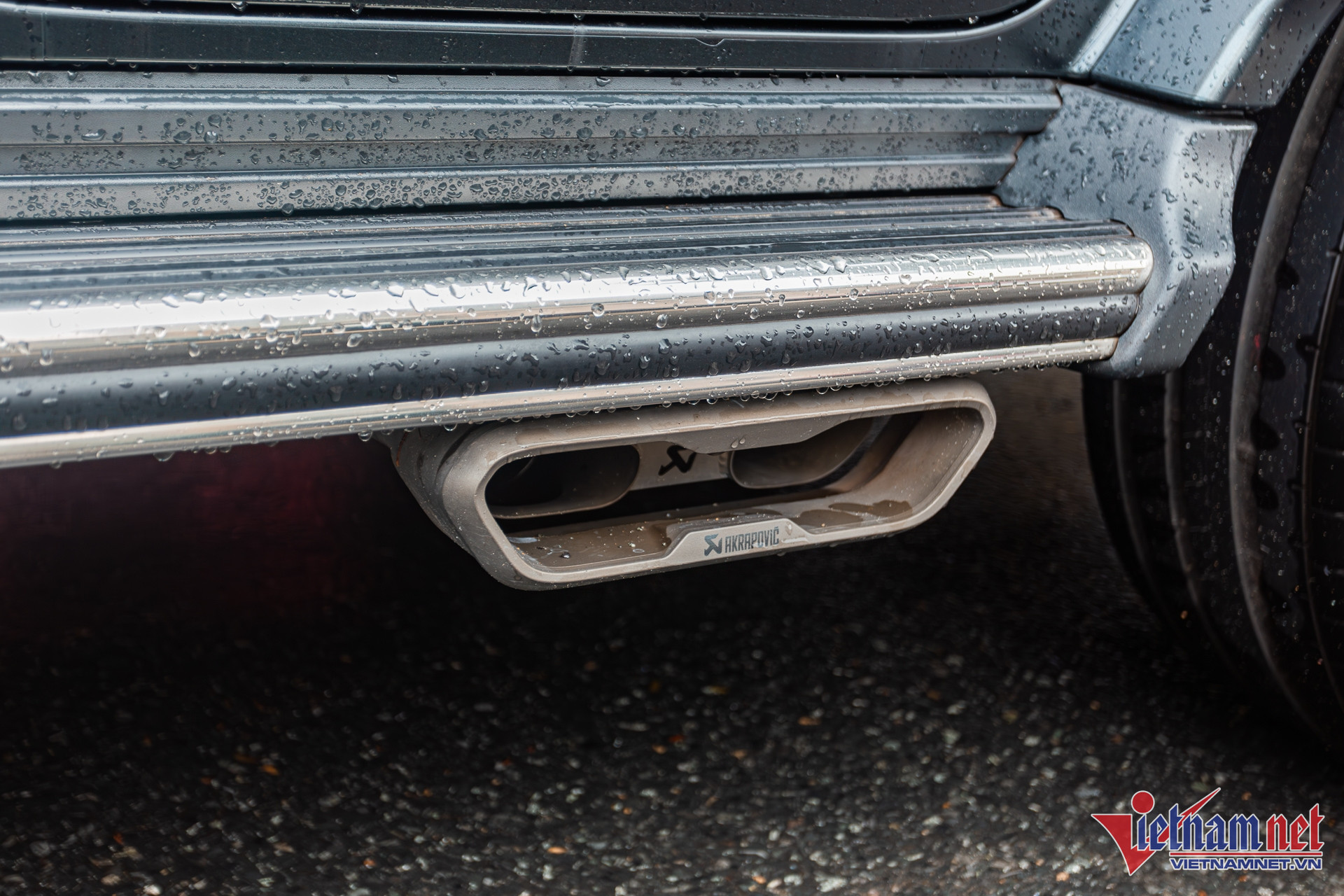 Hệ thống ống xả tiêu chuẩn của xe vốn cho ra âm thanh khá trầm. Vì vậy, chủ xe chọn cách nâng cấp lên ống xả thể thao do hãng ống xả Akrapovic trứ danh sản xuất, cho ra âm thanh đanh thép và uy lực hơn, đồng thời giảm trọng lượng 9,9 kg so với ống xả “zin”. Trong bảng tùy chọn của TopCar, món đồ này có giá 11.250 Euro (quy đổi gần 350 triệu đồng).