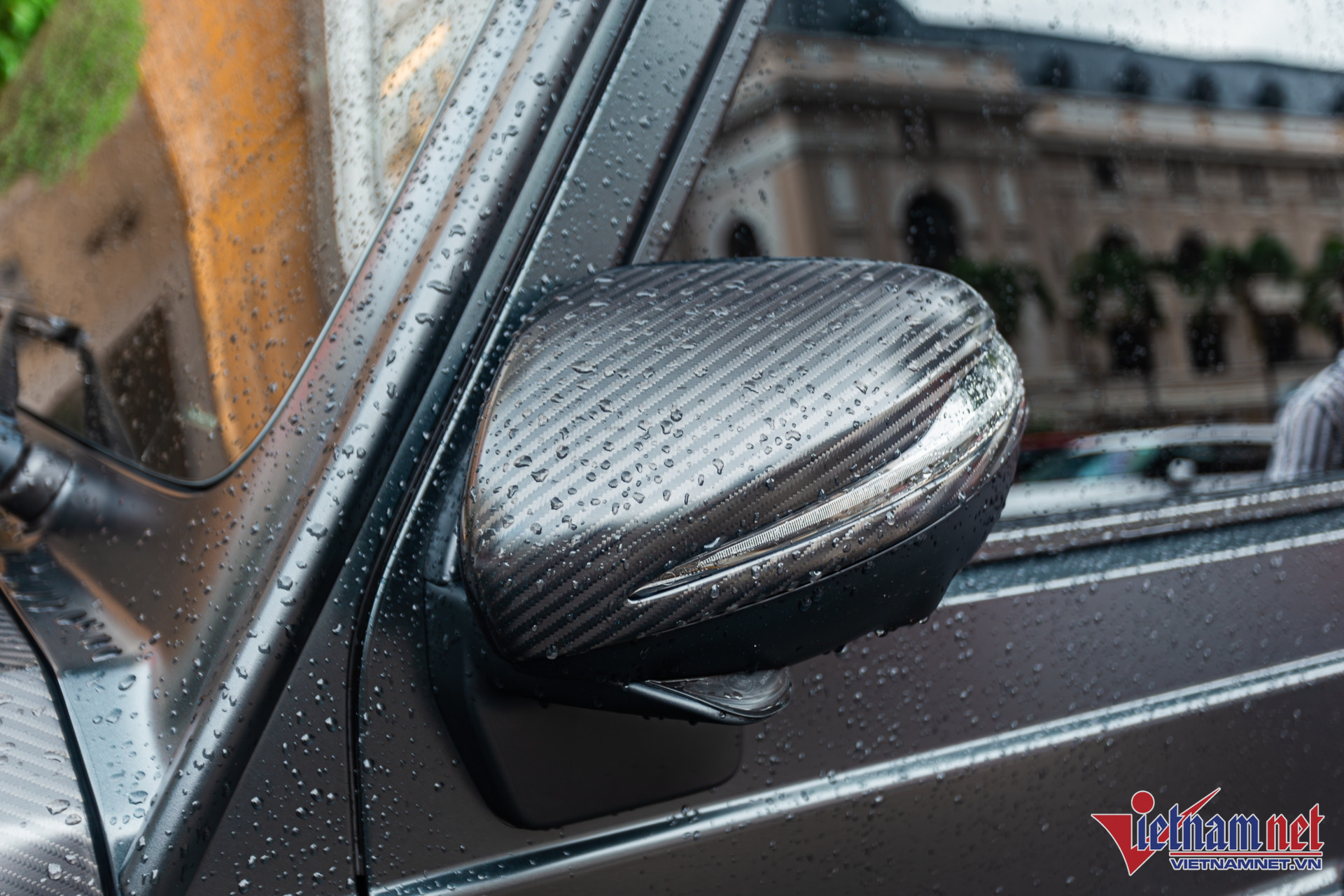 Đuôi xe thay đổi nhẹ nhàng với bộ líp cản sau tích hợp bộ khuếch tán, tạo hình hốc gió giả nằm hai bên. Tương tự cản trước, hai miếng ốp nhỏ trên cản sau cũng thay sang loại làm bằng sợi carbon. Bên trên phần mui, chủ xe chỉ chọn trang bị thêm cánh gió và không có bộ đèn LED như nhiều chiếc G 63 thường độ, giúp xe thêm phần thể thao.