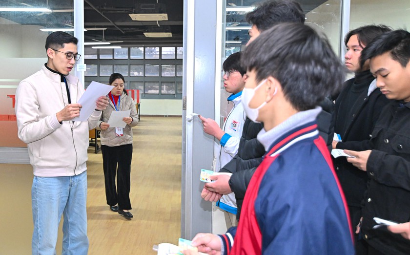 Thí sinh dự thi đánh giá tư duy đợt 1 năm 2026 làm thủ tục vào phòng thi. Ảnh: Ảnh: HUST