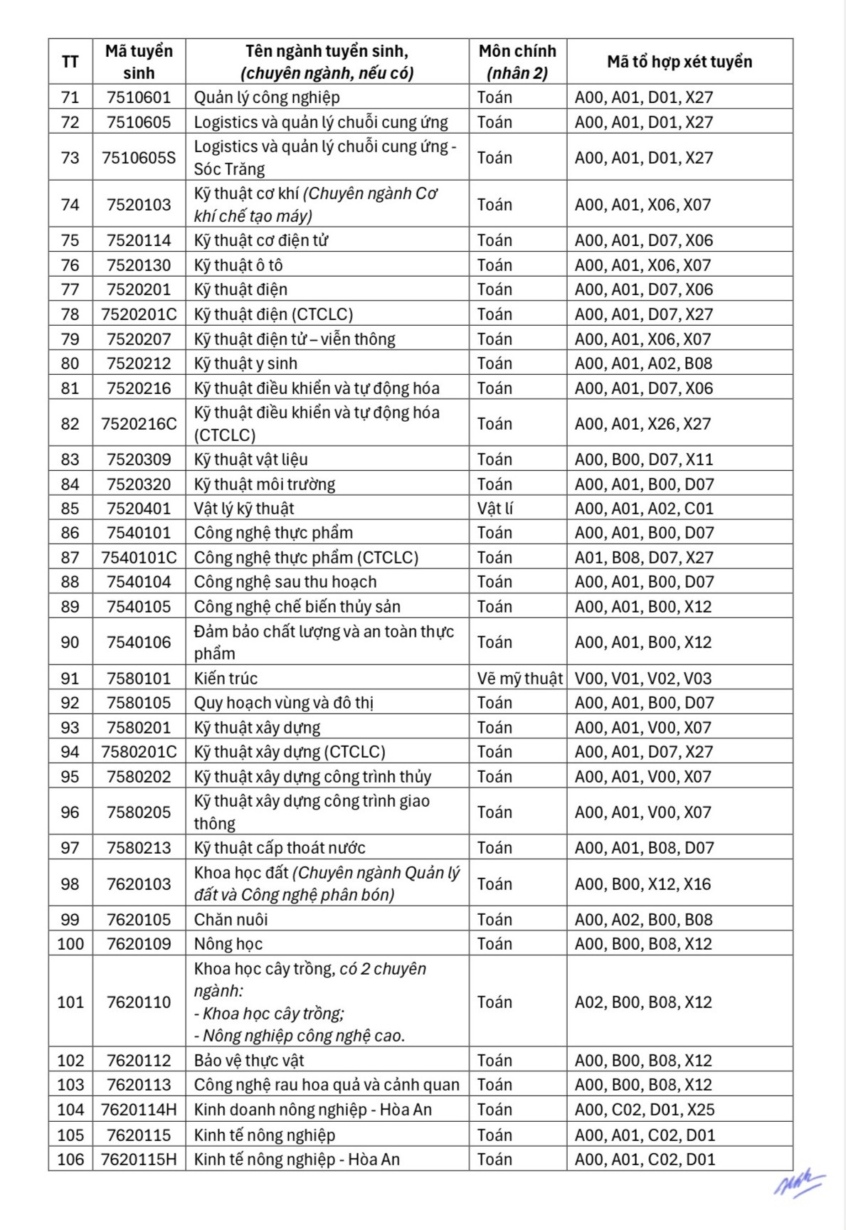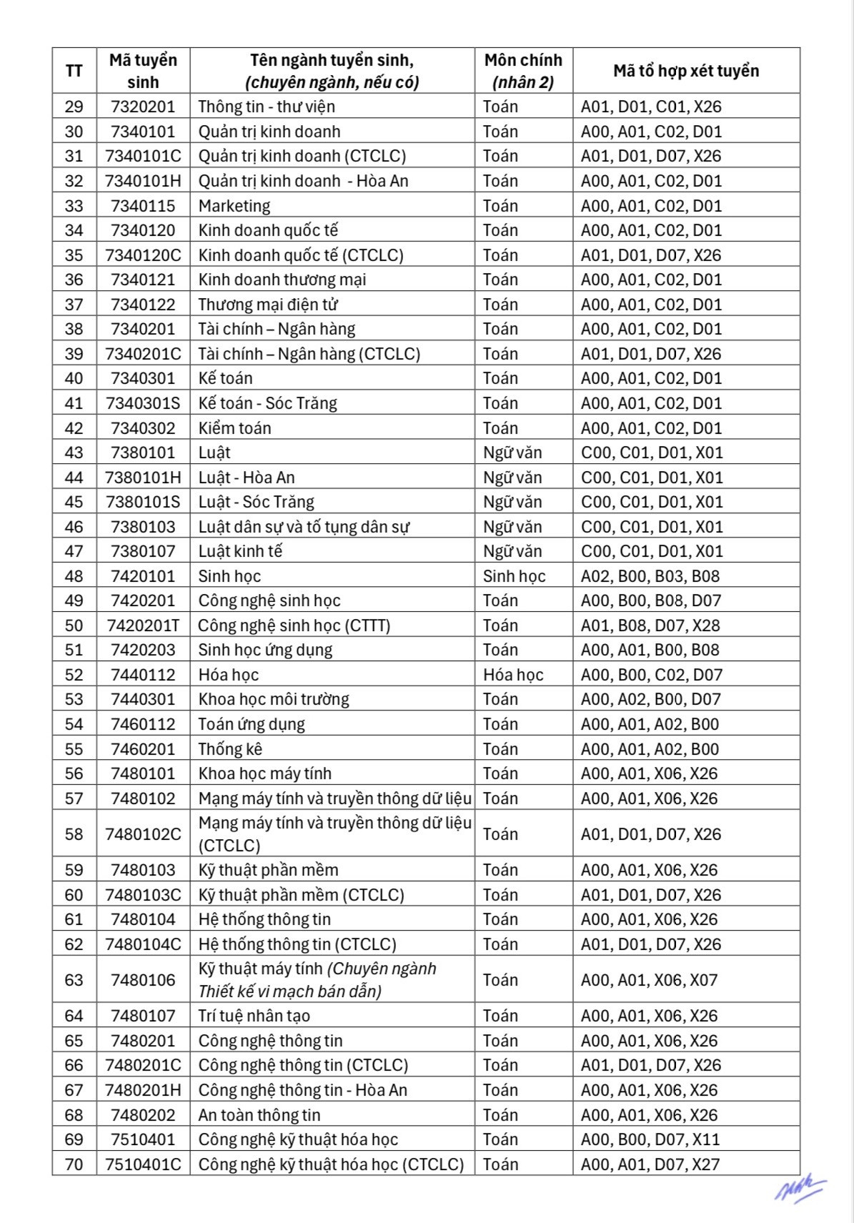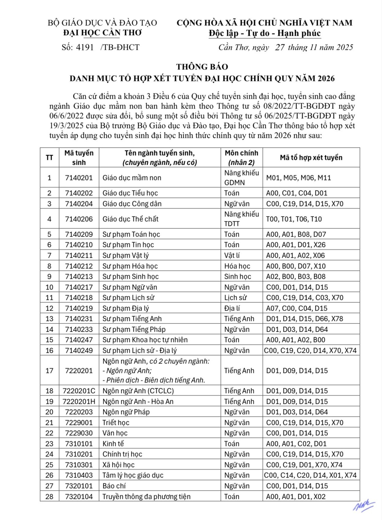 Ngày 17/12, Đại học Cần Thơ cho biết đã ban hành thông báo về danh mục tổ hợp xét tuyển đại học chính quy năm 2026.