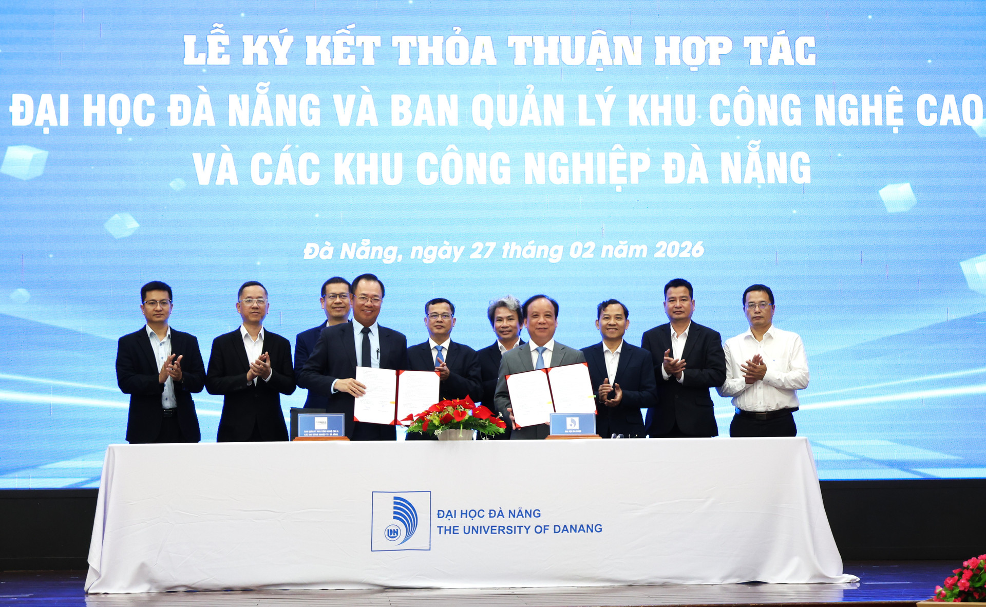Đại học Đà Nẵng ký kết hợp tác với Ban Quản lý Khu Công nghệ cao và các khu công nghiệp Đà Nẵng nhằm tăng cường gắn kết hợp tác "ba nhà" (nhà nước - nhà trường - nhà doanh nghiệp). Ảnh: NGỌC HÀ