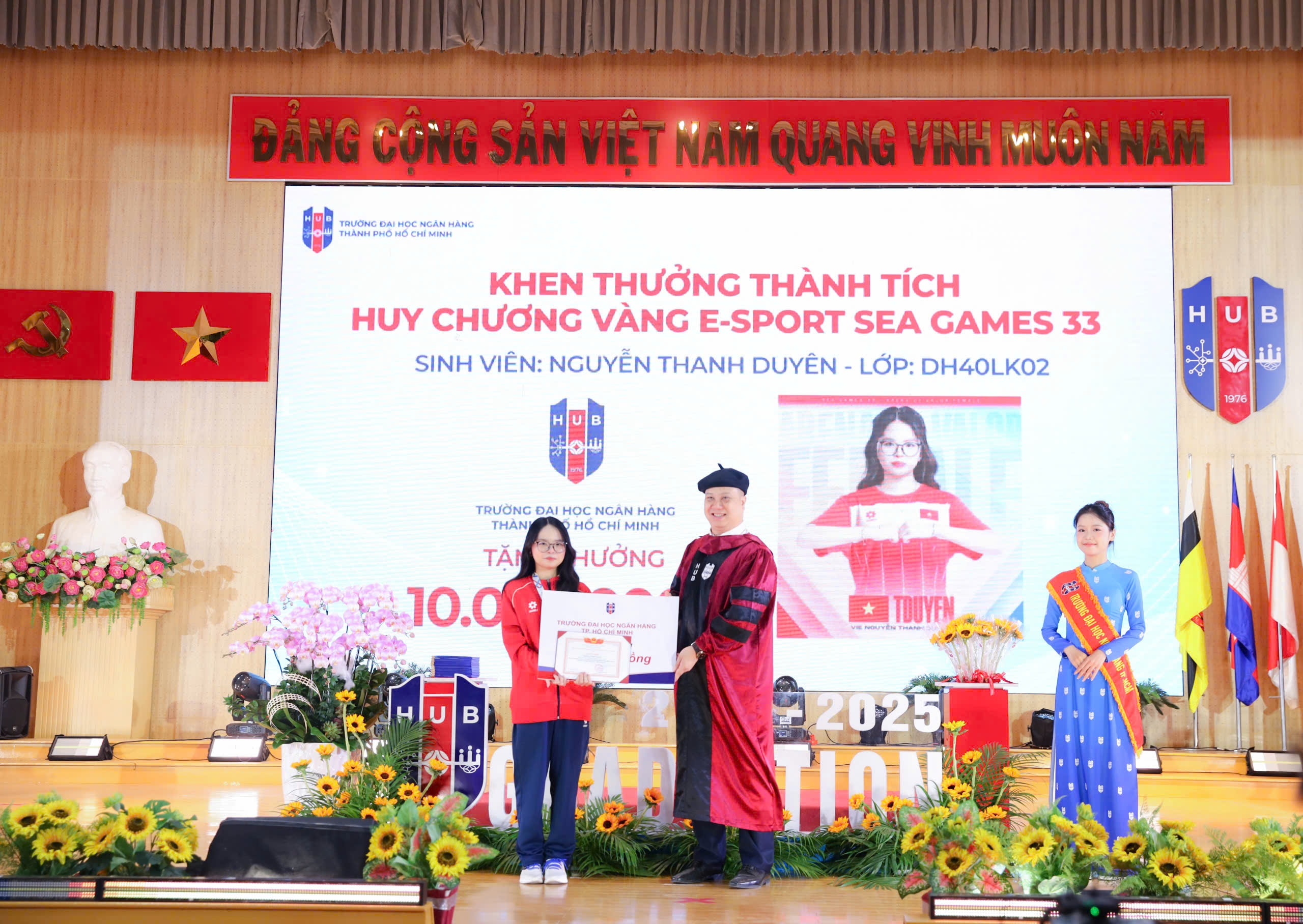Trong khuôn khổ sự kiện, nhà trường tuyên dương và khen thưởng em Nguyễn Thanh Duyên, sinh viên năm 2 ngành Luật kinh tế. Tại SEA Games 33, ở chung kết nội dung đồng đội nữ môn AoV (Liên quân Mobile), Duyên cùng các thành viên trong đội tuyển Việt Nam chiến thắng 4-0 trước Lào, giành ngôi vô địch.