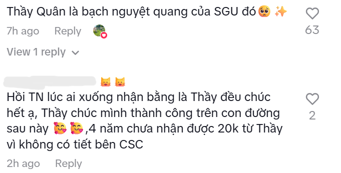Video nhanh chóng “gây sốt” cộng đồng mạng. Đặc biệt, thầy Quân còn nhận được nhiều lời khen ngợi từ cả cựu sinh viên lẫn sinh viên hiện tại nhờ sự tận tâm của mình.
