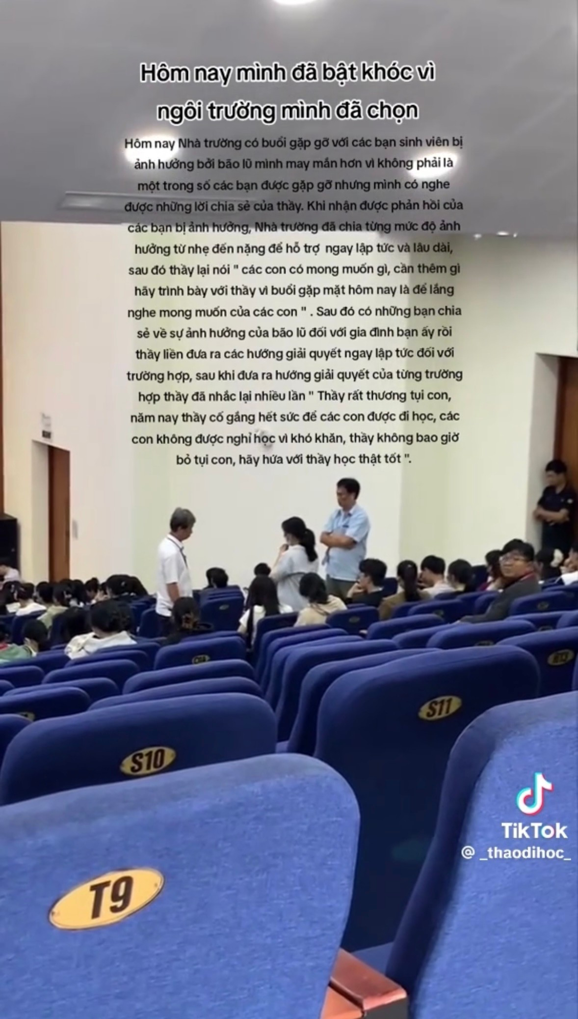 Lời chia sẻ chân thành giản dị, mộc mạc mà gần gũi khiến nhiều sinh viên bật khóc. Nguồn: @_thaodihoc_