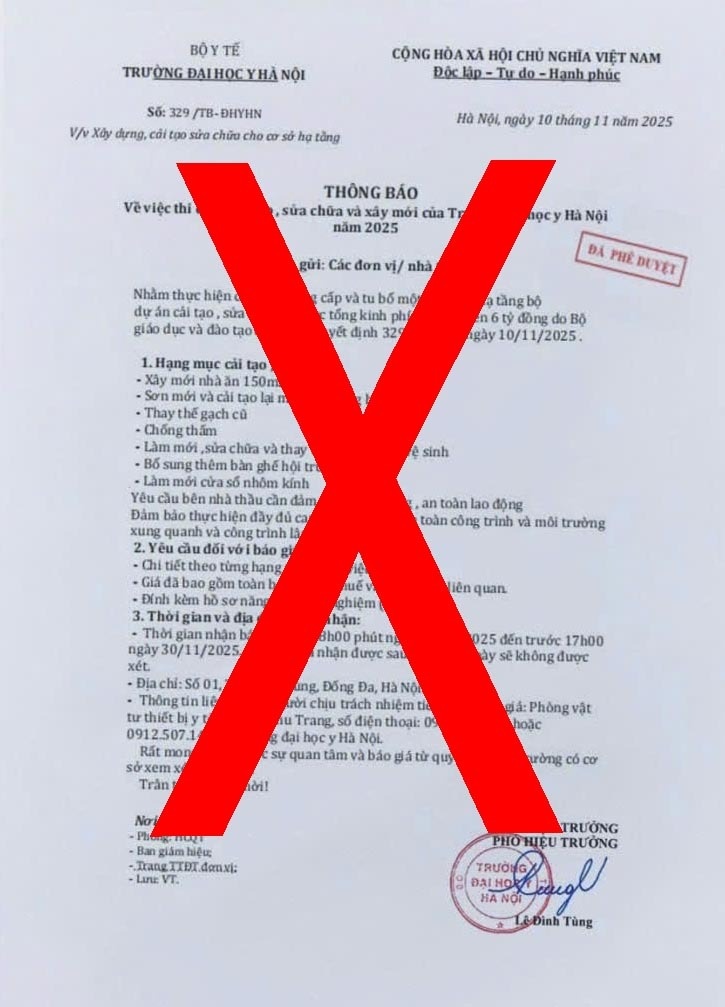 Cụ thể, nhà trường cho biết một số đối tượng đã sử dụng biểu mẫu, con dấu và giấy tờ giả để yêu cầu sinh viên đăng ký đồng phục, nộp phí hoặc cung cấp dữ liệu cá nhân. Những hành vi này gây hiểu nhầm và ảnh hưởng trực tiếp đến uy tín của Đại học Y Hà Nội.