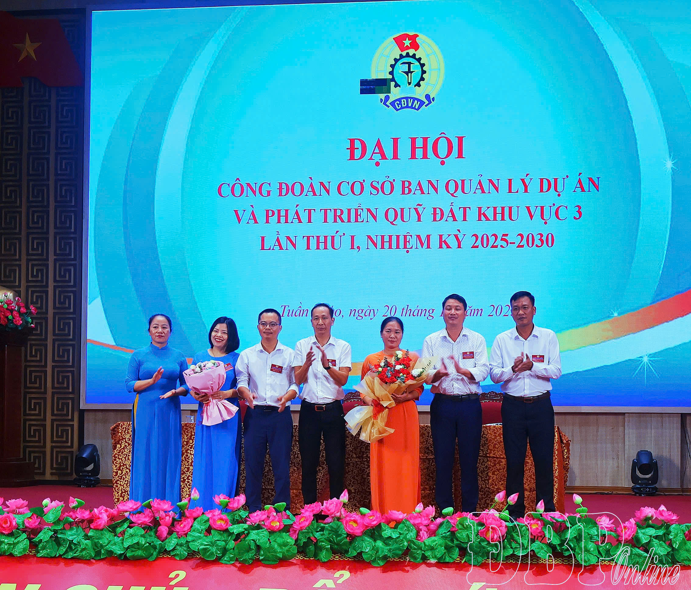 Lãnh đạo LĐLĐ tỉnh và Ban Quản lý Dự án và Phát triển quỹ đất Khu vực 3 tặng hoa chúc mừng BCH khóa mới.