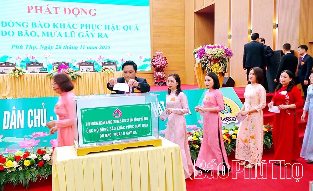 Nhân dịp này, Chi nhánh Ngân hàng CSXH tỉnh đã phát động đại biểu ủng hộ 1 ngày lương hỗ trợ đồng bào các tỉnh bị thiệt hại nặng nề do mưa lũ.