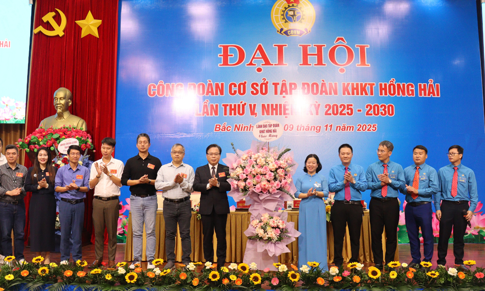 Công đoàn Tập đoàn Khoa học kỹ thuật Hồng Hải hiện có 5 Công đoàn cơ sở trực thuộc với hơn 15.500 đoàn viên, trong đó nữ chiếm 47,3%. Nhiệm kỳ qua, Công đoàn Tập đoàn đã tổ chức 36 cuộc đối thoại, tọa đàm giữa người lao động và người sử dụng lao động, giải quyết 89 kiến nghị, bảo đảm quyền lợi chính đáng cho đoàn viên.
