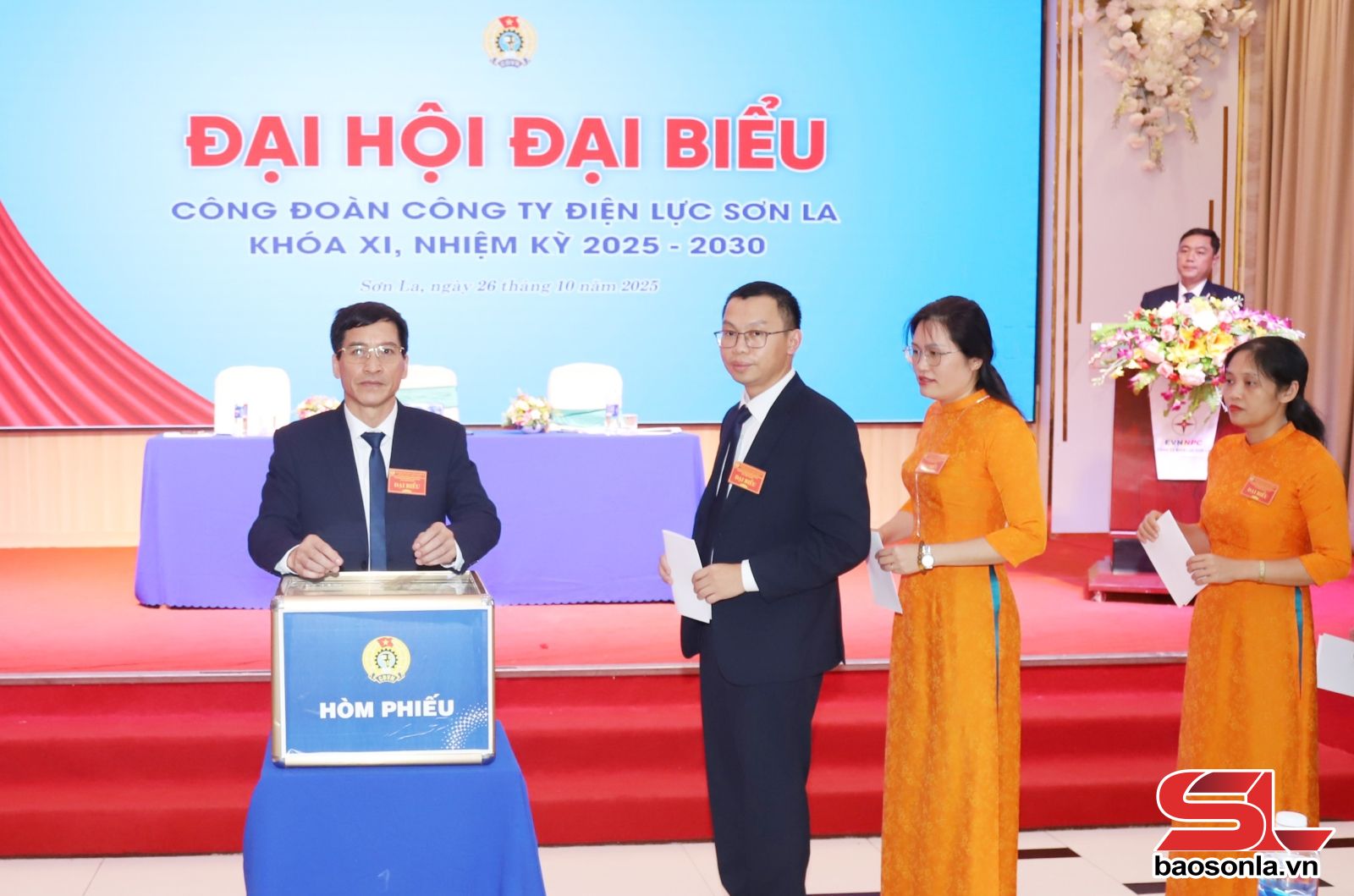 Các đại biểu bỏ phiếu bầu Ban Chấp hành Công đoàn Công ty Điện lực Sơn La lần thứ XI, nhiệm kỳ 2025-2030.