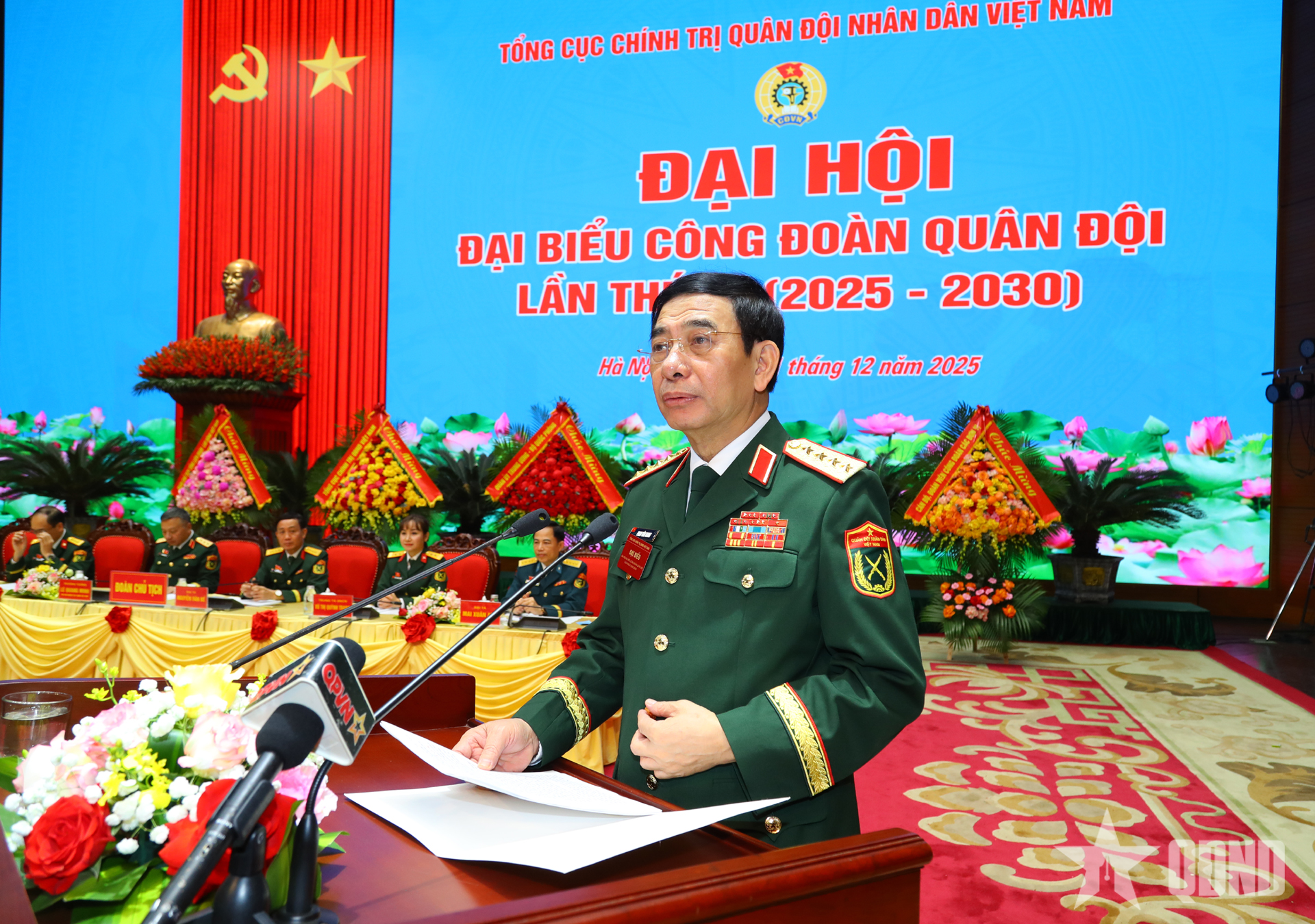 Thay mặt Quân ủy Trung ương, lãnh đạo Bộ Quốc phòng, phát biểu chỉ đạo đại hội, Đại tướng Phan Văn Giang ghi nhận, chúc mừng những tiến bộ, trưởng thành, những cống hiến, đóng góp to lớn của đội ngũ cán bộ, ĐVCĐ, NLĐ trong toàn quân; biểu dương cấp ủy, chính ủy, chính trị viên, người chỉ huy, cơ quan chính trị các cấp đã quan tâm lãnh đạo, chỉ đạo tổ chức thực hiện tốt phong trào công nhân và hoạt động công đoàn trong thời gian qua.