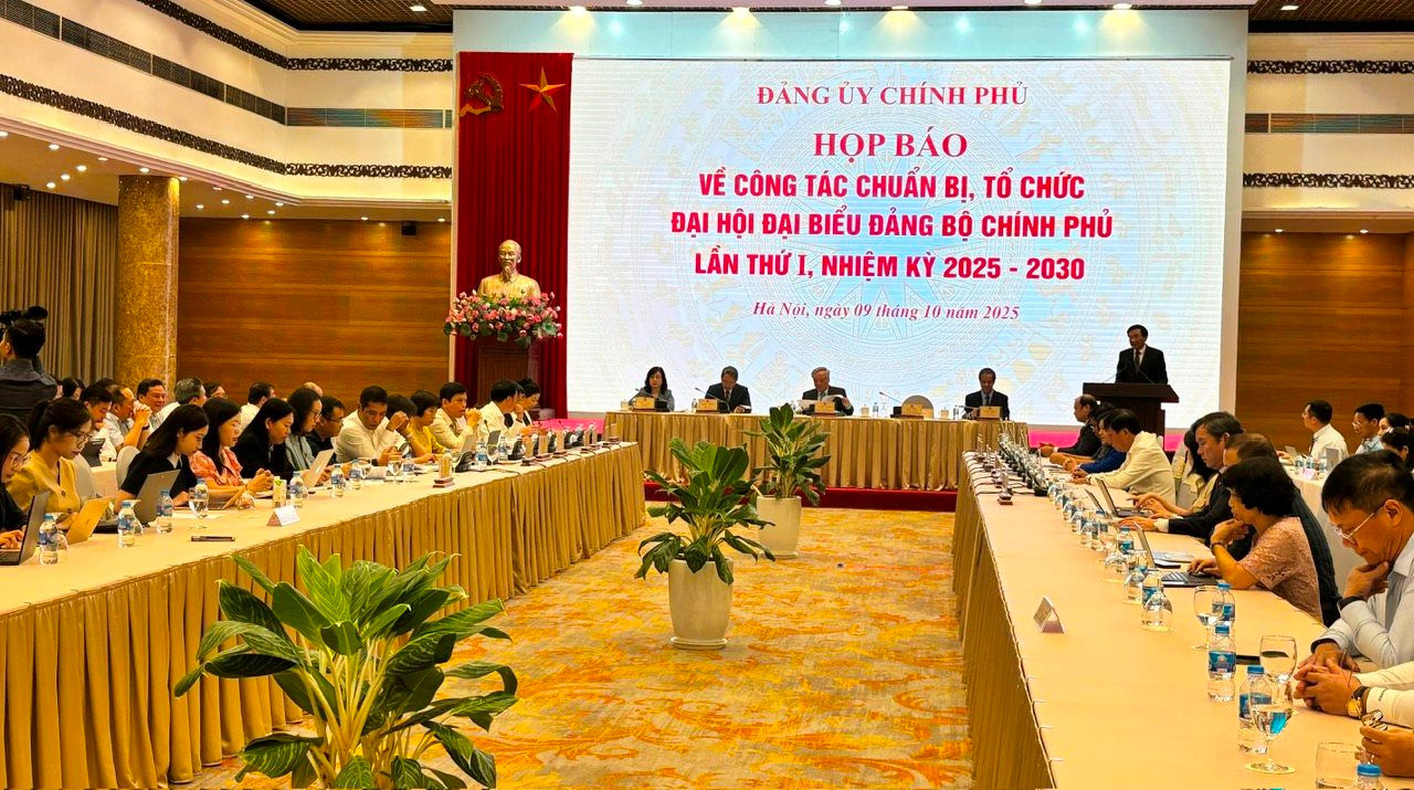 Sáng 09/10, tại Hà Nội, Văn phòng Chính phủ tổ chức Họp báo về công tác chuẩn bị, tổ chức Đại hội Đại biểu Đảng bộ Chính phủ lần thứ 1, nhiệm kỳ 2025-2030.