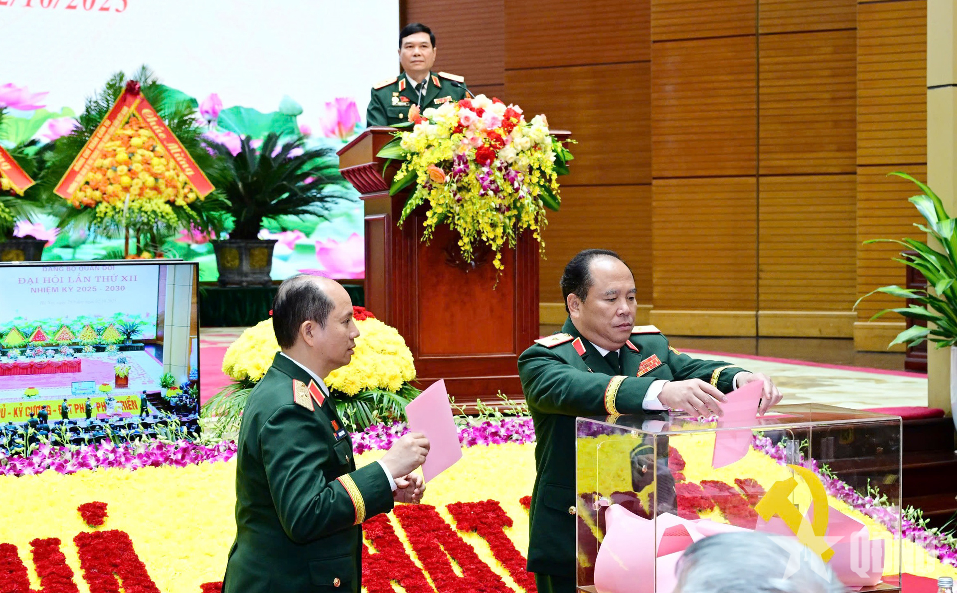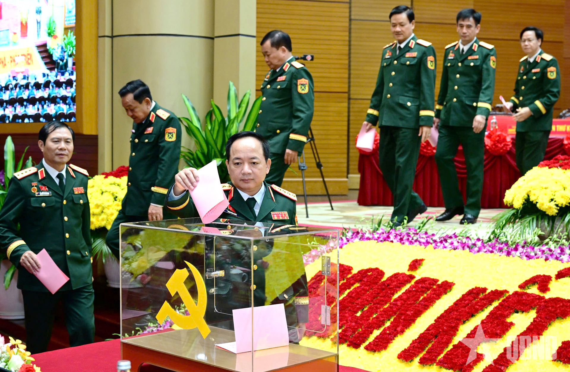 Đại tướng Trịnh Văn Quyết và các đại biểu bỏ phiếu bầu Đoàn đại biểu Đảng bộ Quân đội đi dự Đại hội XIV của Đảng.