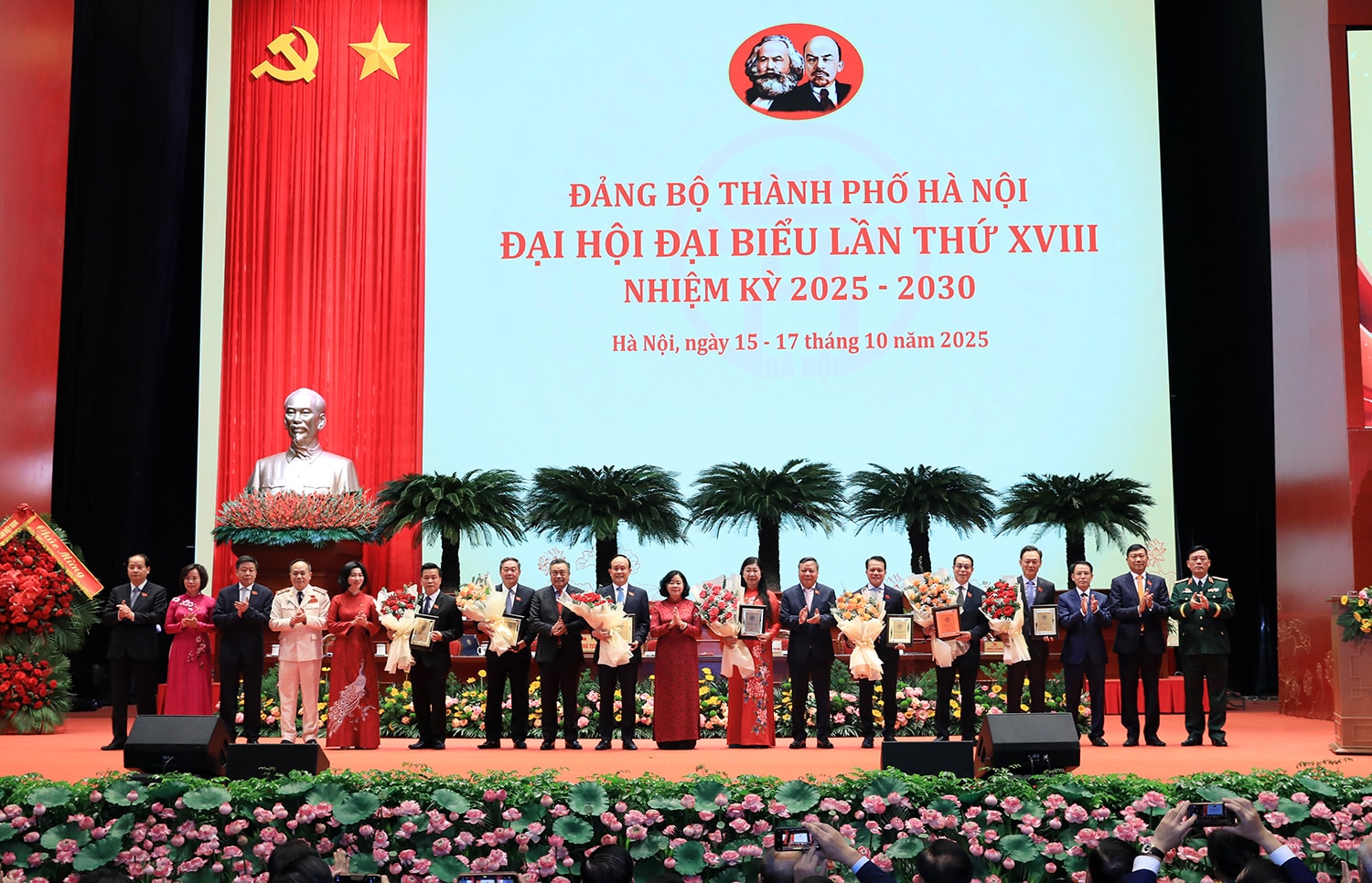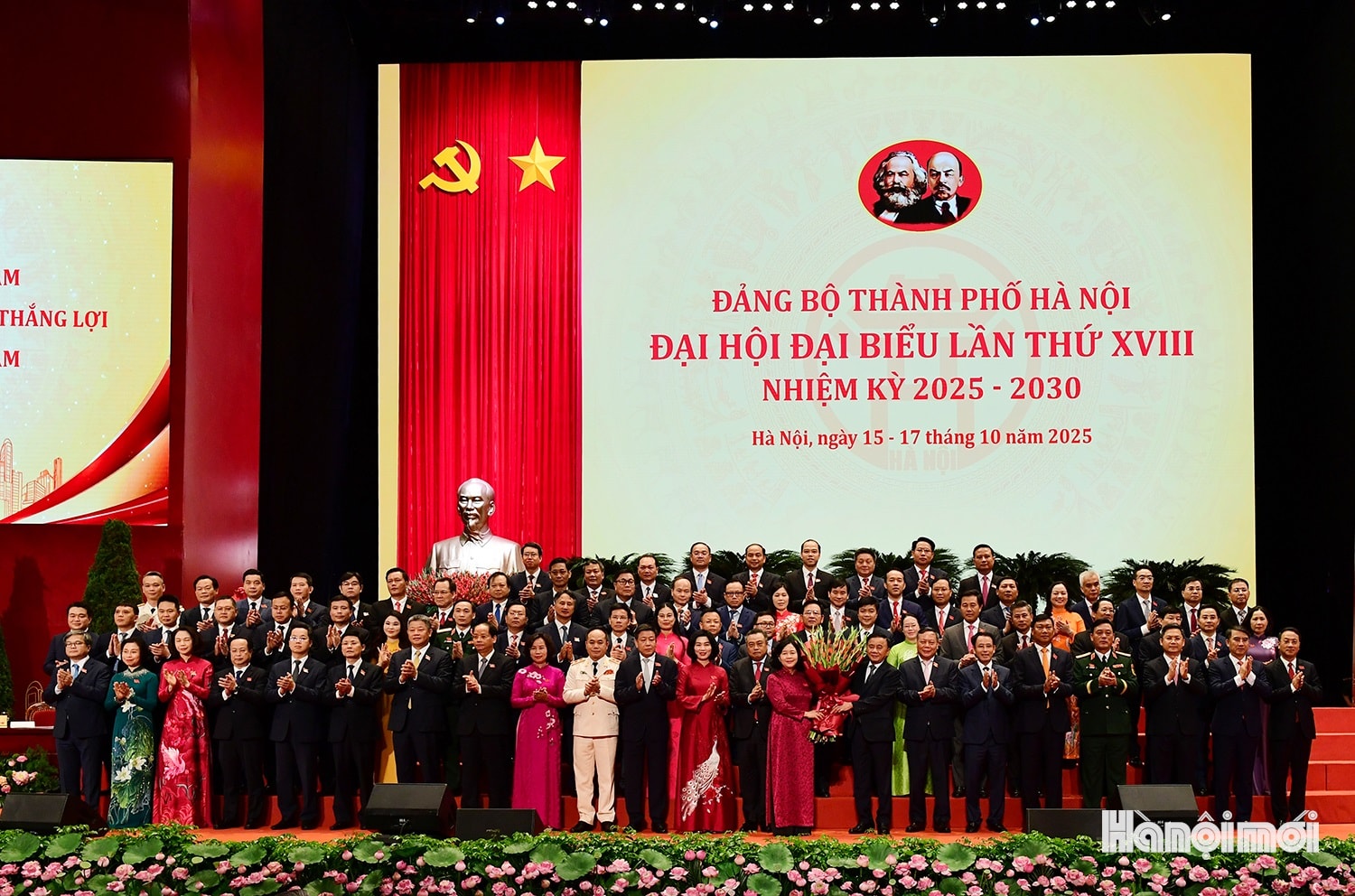 Ban Chấp hành Đảng bộ thành phố Hà Nội khóa XVIII, nhiệm kỳ 2025-2030 ra mắt Đại hội.