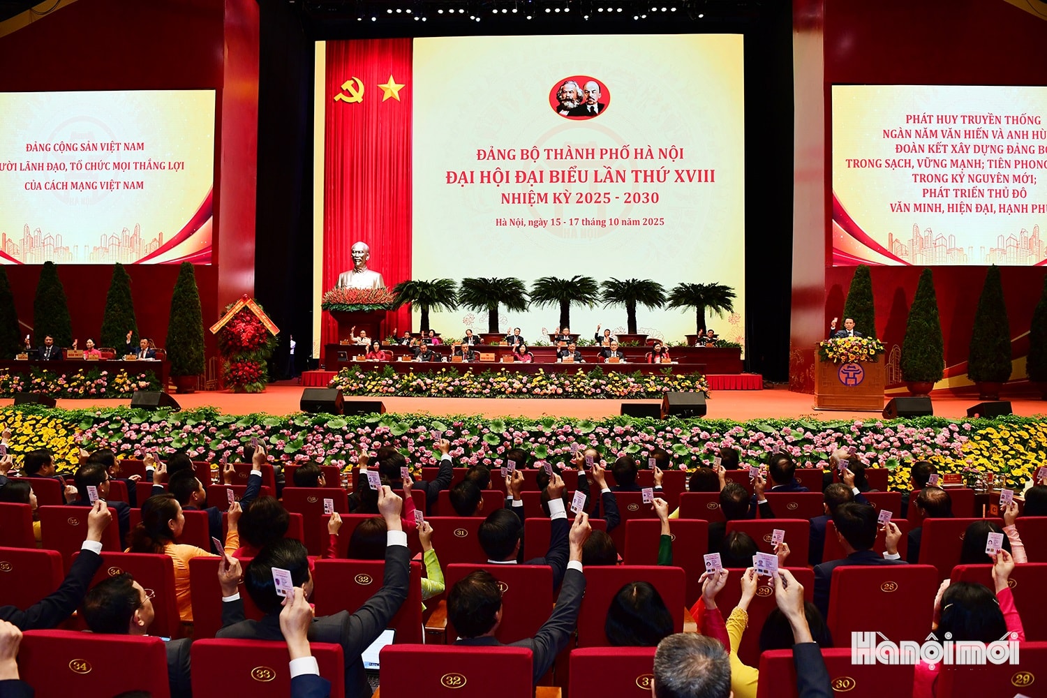 Khoảng 16h30, Đại hội đại biểu Đảng bộ thành phố Hà Nội khóa XVIII, nhiệm kỳ 2025-2030 đã hoàn thành toàn bộ chương trình và thành công tốt đẹp.