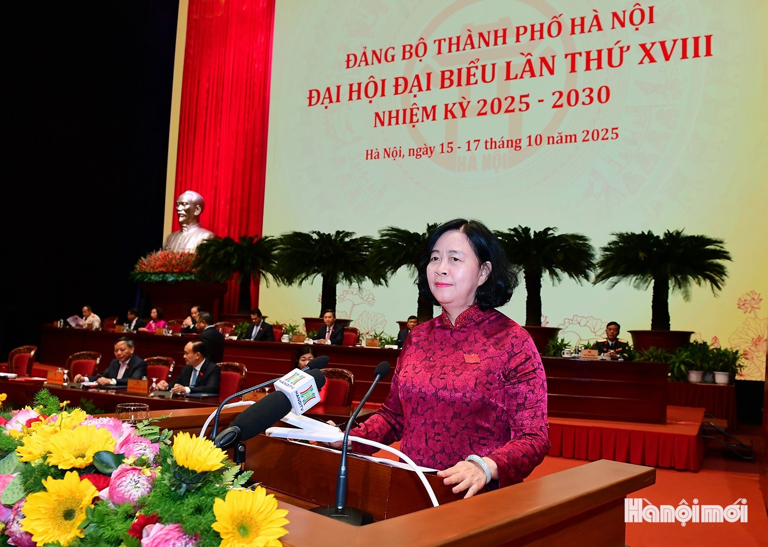 Bí thư Thành ủy Hà Nội Bùi Thị Minh Hoài phát biểu bế mạc Đại hội.
