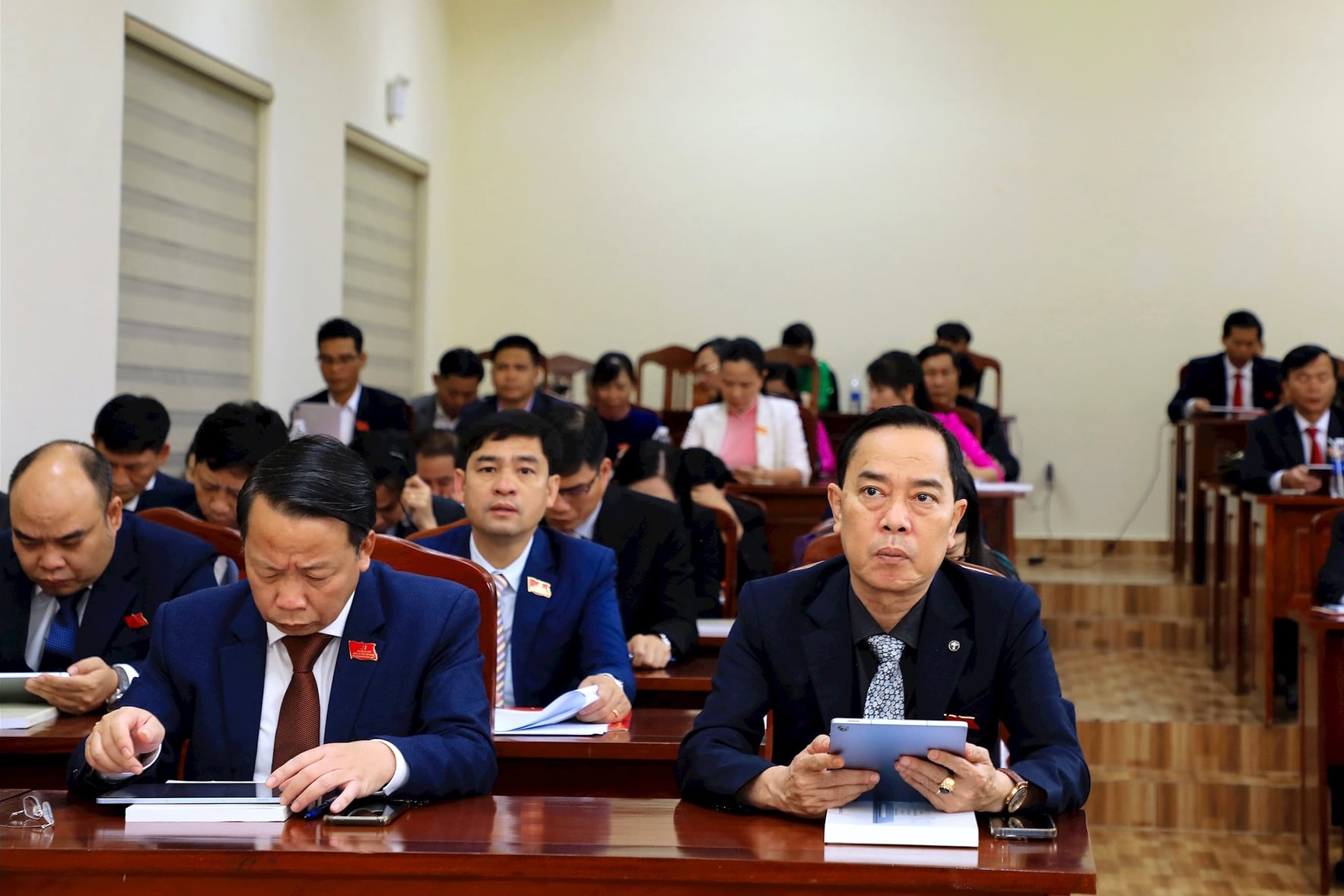 Tham gia tổ thảo luận có các đồng chí: Y Quang BKrông, Ủy viên Ban Thường vụ Tỉnh ủy, Phó Chủ tịch HĐND tỉnh, Tổ trưởng; Võ Phạm Xuân Lâm, Ủy viên Ban Thường vụ Tỉnh ủy, Bí thư Đảng ủy phường Bắc Gia Nghĩa, Tổ phó; các đại biểu thuộc các đơn vị: Quảng Trực, Phường 1 Bảo Lộc, Phường 2 Bảo Lộc, Tân Hà Lâm Hà, Đạ Tẻh 3, Đạ Tẻh, Bắc Gia Nghĩa, Đông Gia Nghĩa, Đức An và Liên Hương.