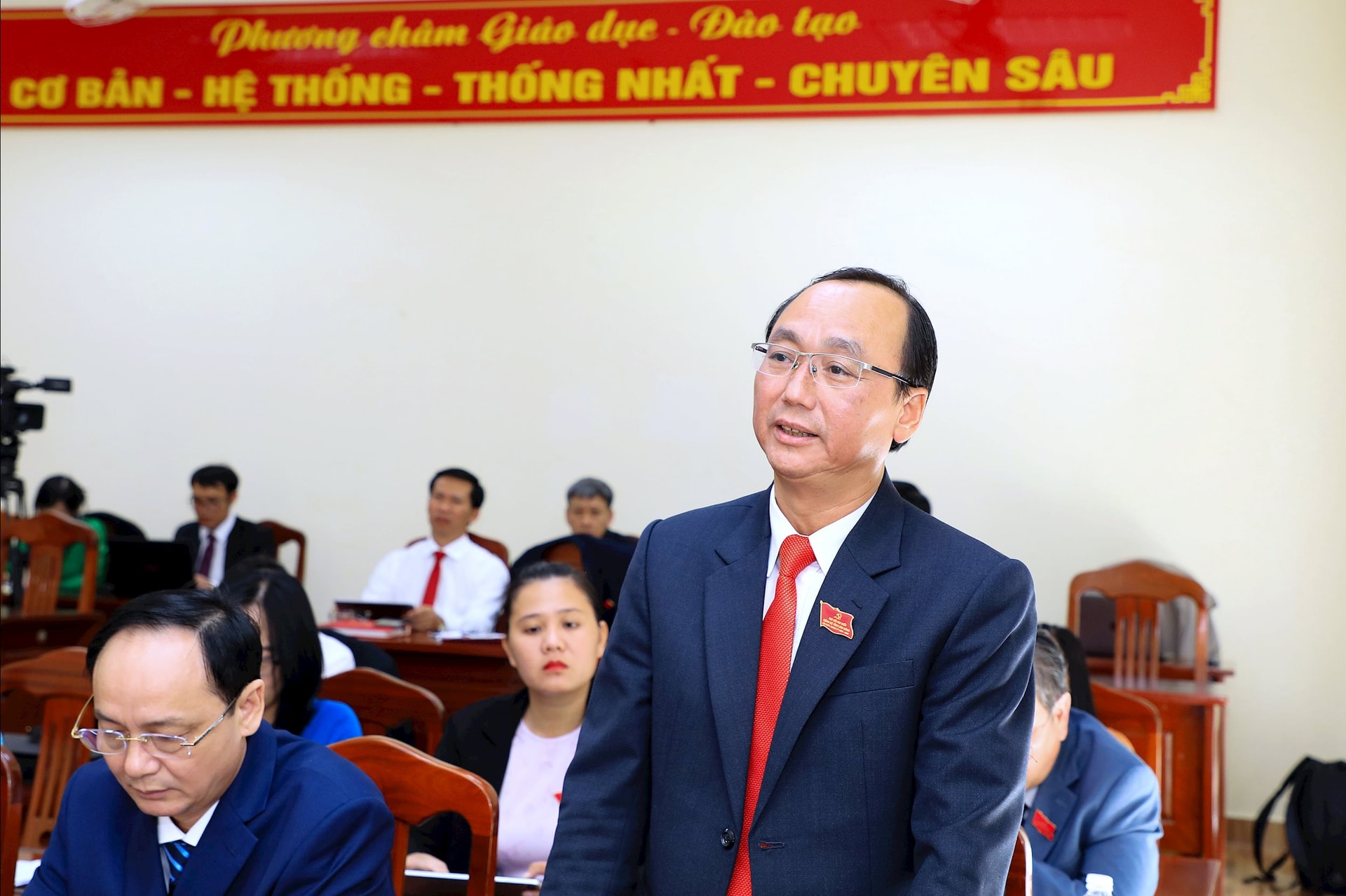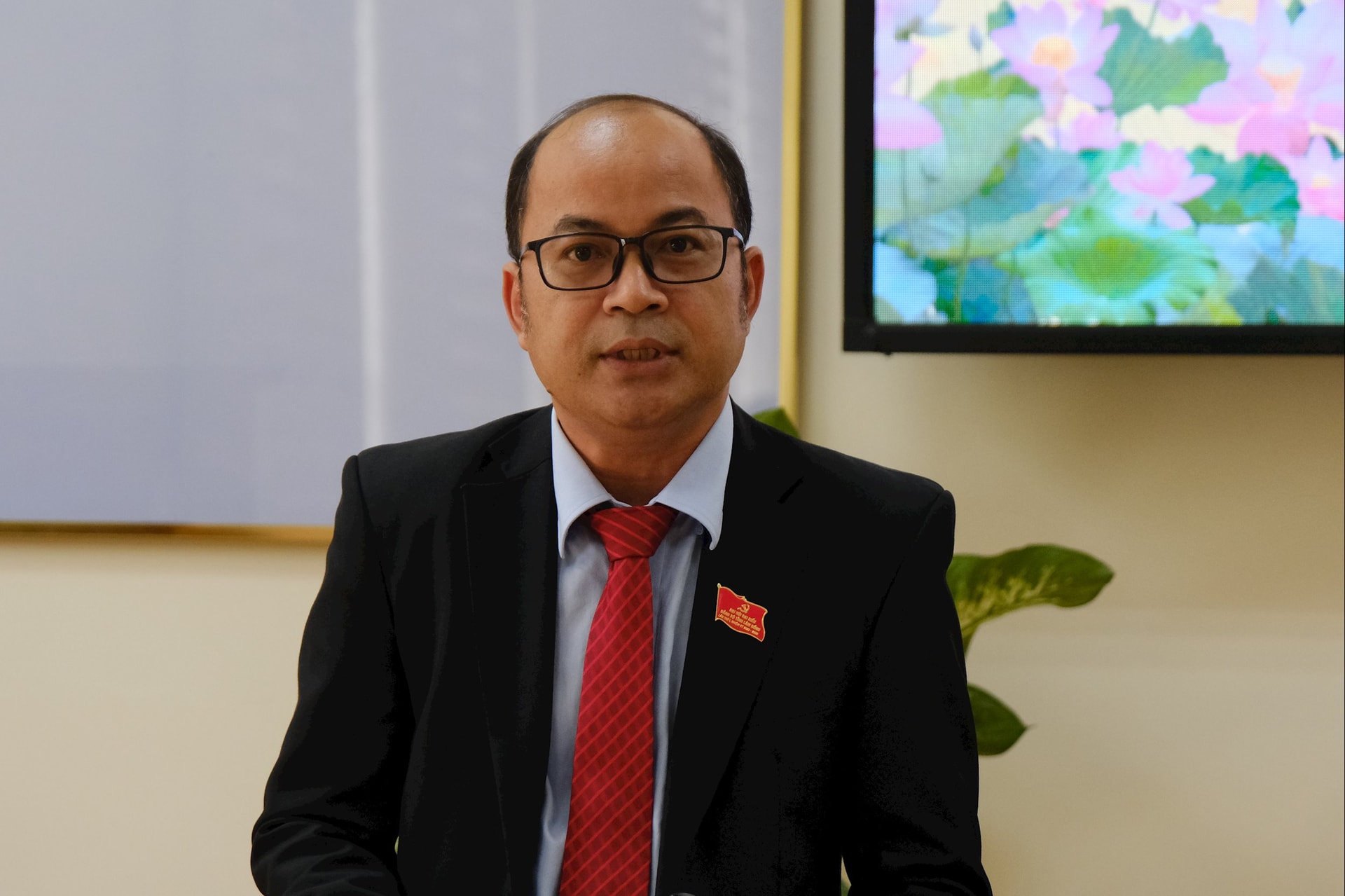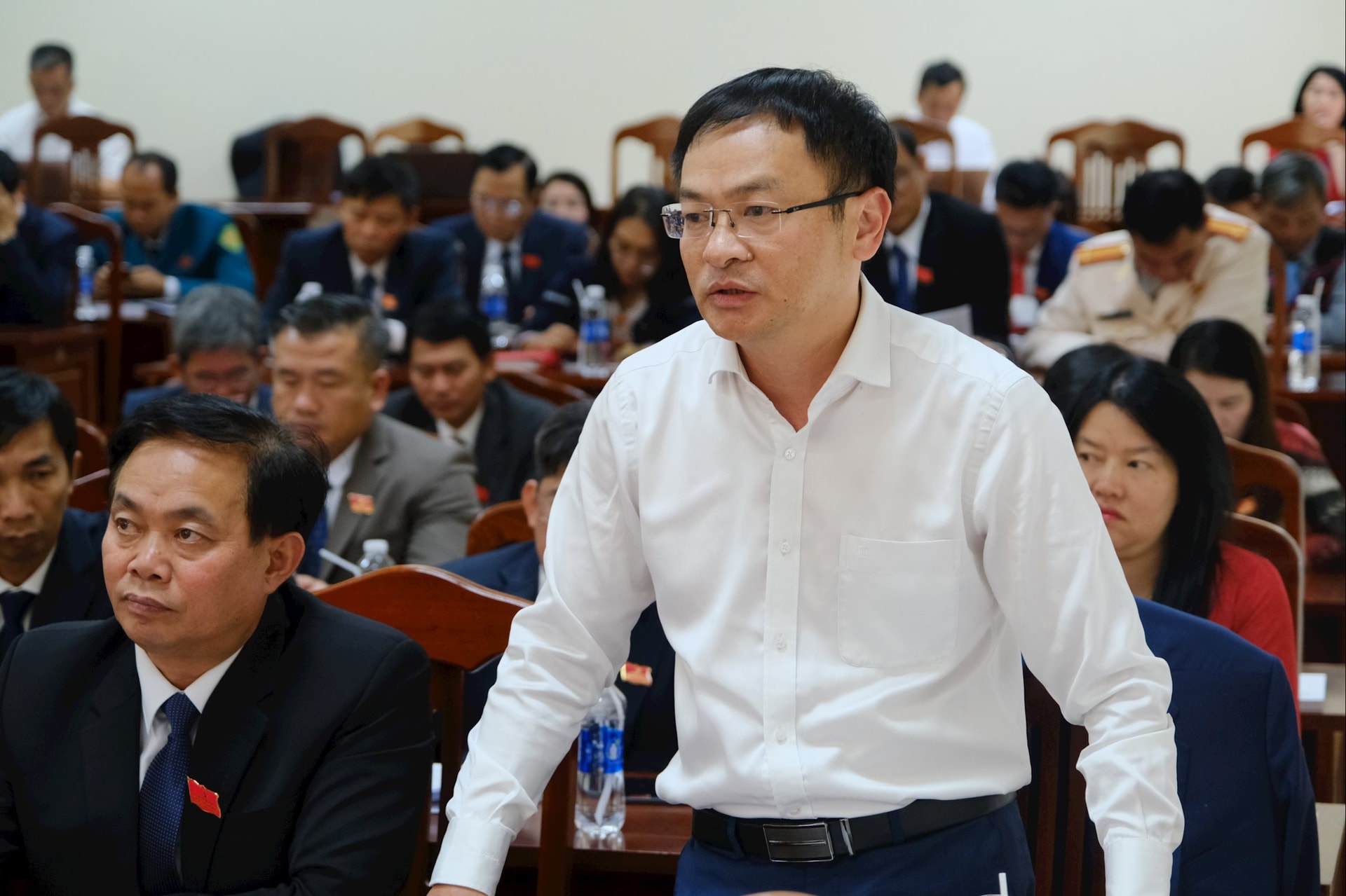 Đại biểu Tôn Thiện San, Giám đốc Sở Nông nghiệp và Môi trường đề xuất giải pháp về tháo gỡ điểm nghẽn trong quy hoạch bô xít