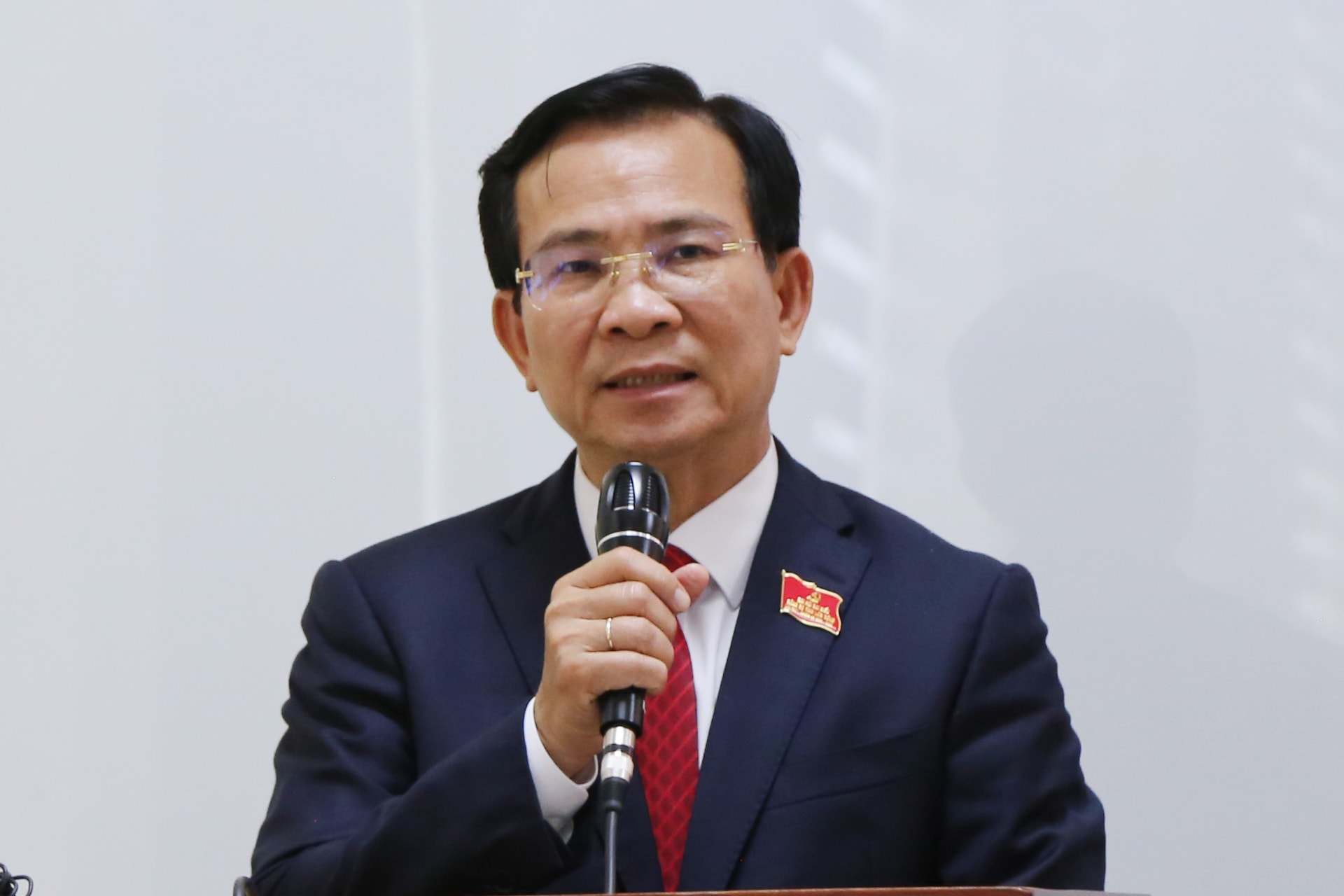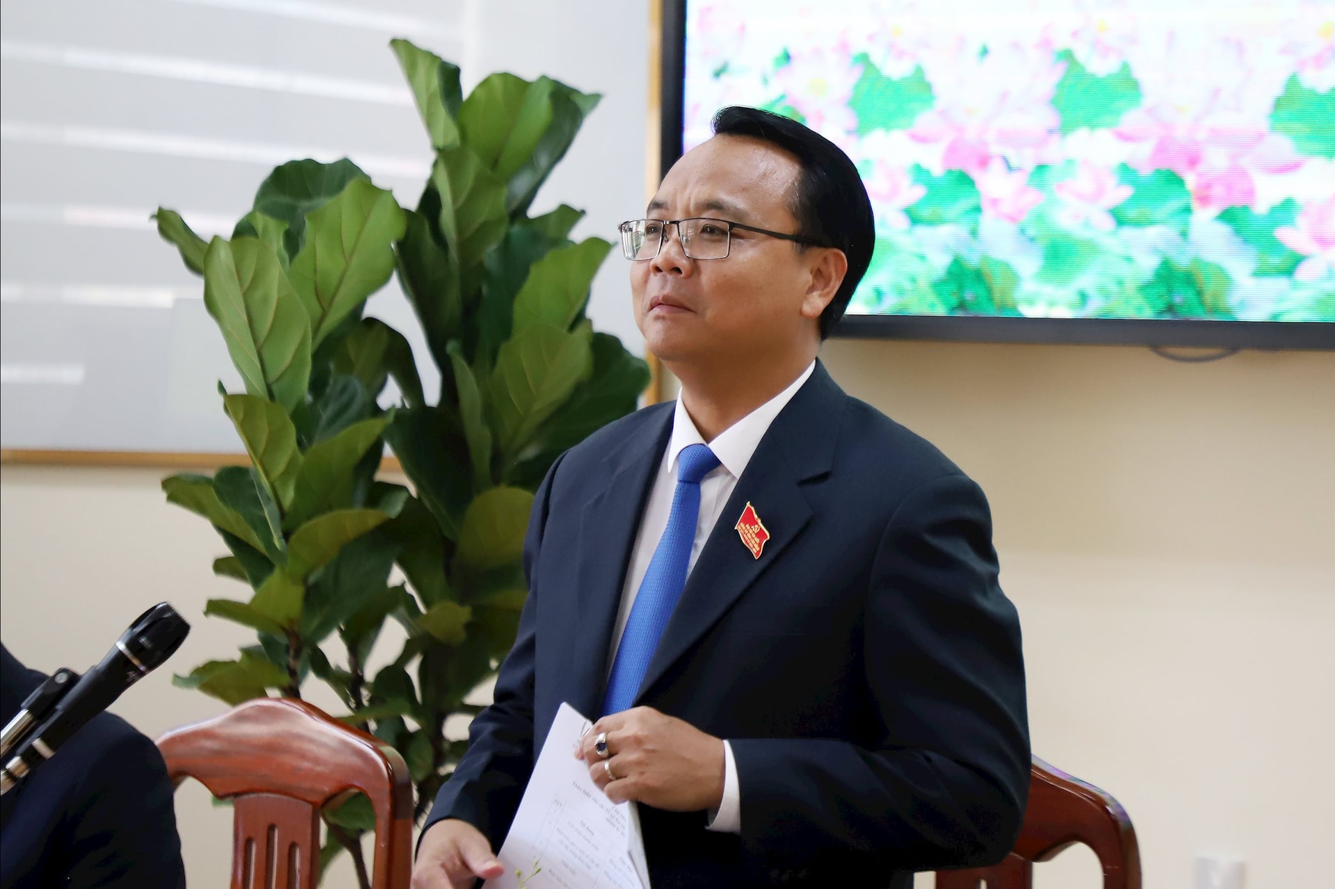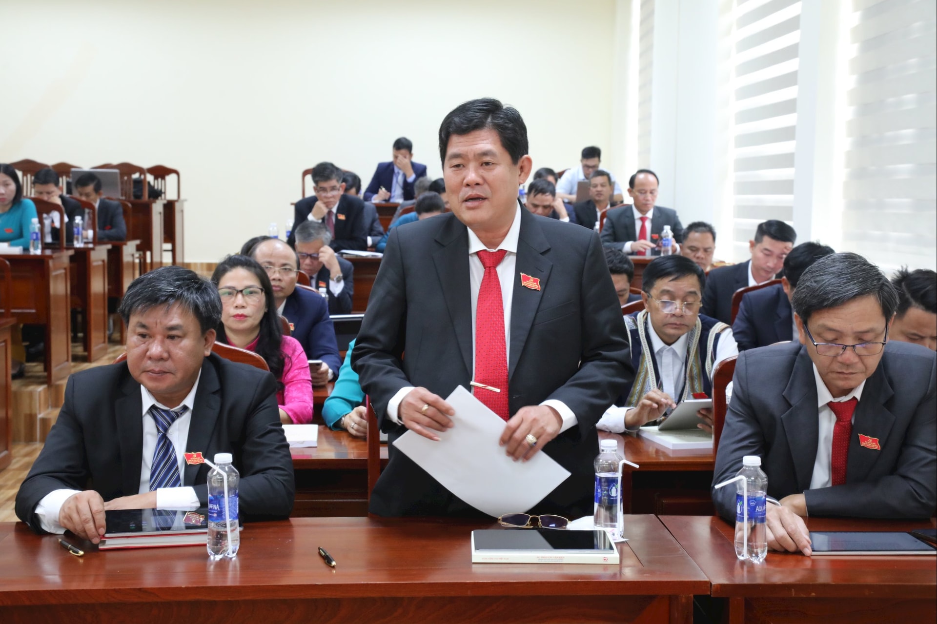 Đại biểu Tôn Thiện San, Giám đốc Sở Nông nghiệp và Môi trường đề xuất giải pháp về tháo gỡ điểm nghẽn trong quy hoạch bô xít